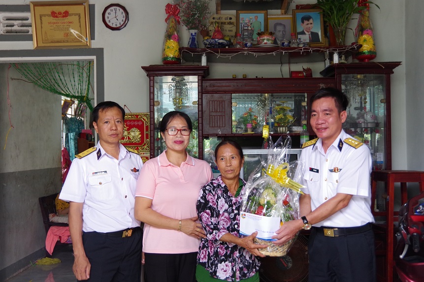 Chiều 22/7, Lữ đoàn 162, Vùng 4 Hải quân phối hợp cùng chính quyền địa phương phường Cam Nghĩa, TP. Cam Ranh, tỉnh Khánh Hoà thăm, tặng quà 7 gia đình chính sách trên địa bàn.