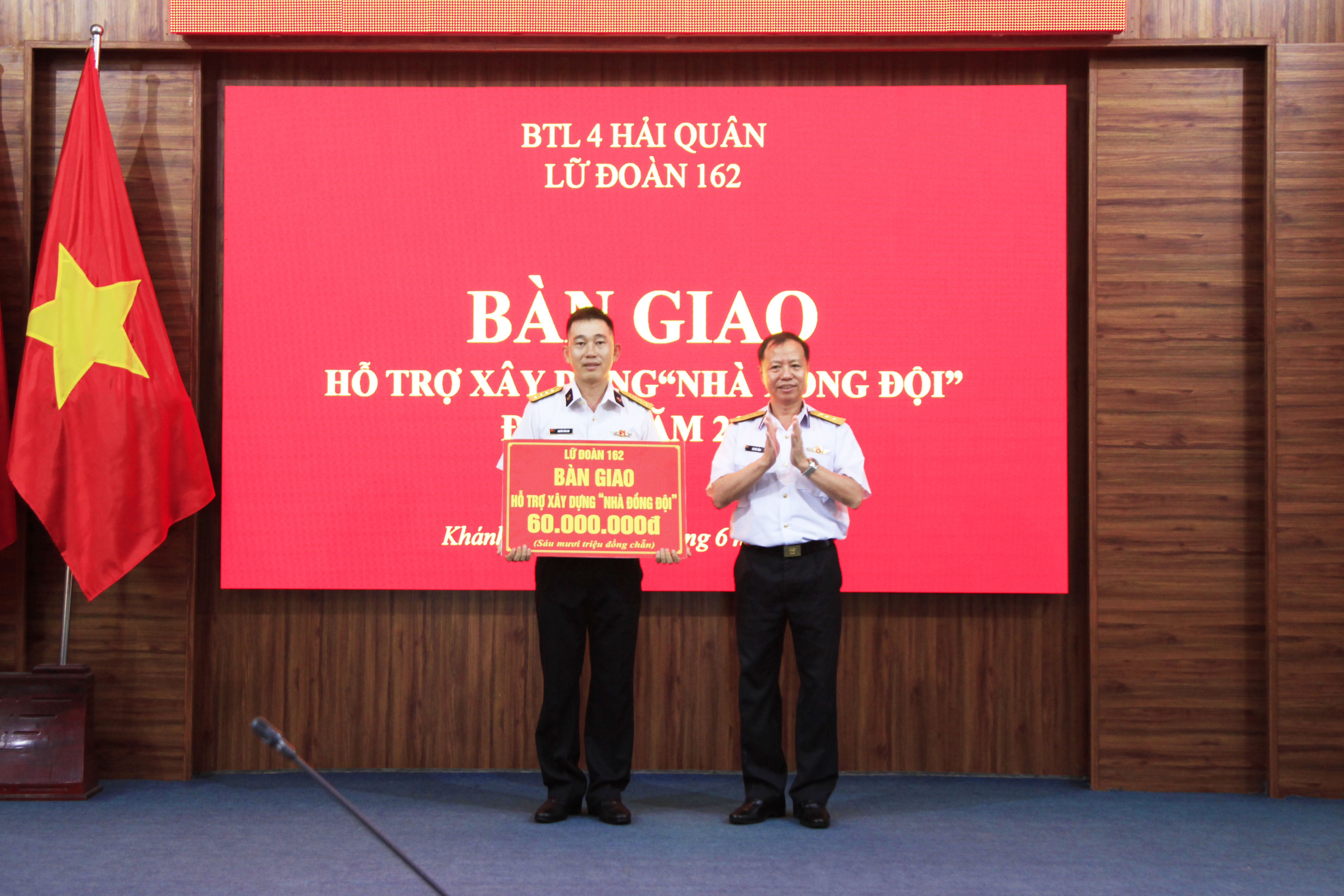 Sáng 30/6, tại Khánh Hoà, Lữ đoàn 162, Vùng 4 Hải quân tổ chức trao kinh phí hỗ trợ xây dựng nhà đồng đội cho Thượng uý QNCN Lưu Văn Phương, Khẩu đội trưởng, Tàu 015-Trần Hưng Đạo và Đại uý QNCN Nguyễn Tiến Lâm, Nhân viên tên lửa, Tàu 376, Hải đội 412.