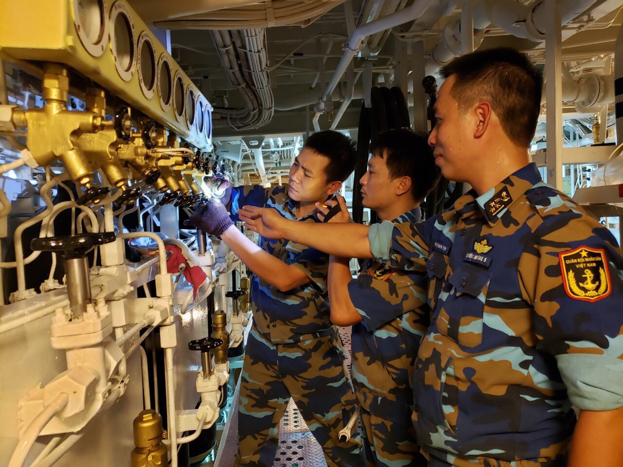 Thiếu tá Hoàng Ngọc Long, Phó Chủ nhiệm Kỹ thuật Lữ đoàn chia sẻ: Cán bộ kỹ thuật của Lữ đoàn được cử theo các tàu luôn bám sát các kíp trực hành trình, đôn đốc kiểm tra các thông số kỹ thuật, tình trạng của máy, thiết bị, hệ thống động lực, hệ thống VKTBKT, đặc biệt trong tình trạng sóng, gió lớn, kiên quyết không để xảy ra các sự cố do lỗi chủ quan, duy trì nghiêm kỷ luật công tác ngành kỹ thuật. Tùy theo điều kiện thực tế, chúng tôi chỉ đạo tàu tận dụng tối đa thời gian kiểm tra, bảo quản, bảo dưỡng, khắc phục những lỗi hư hỏng nhỏ phát sinh trong quá trình hoạt động.
