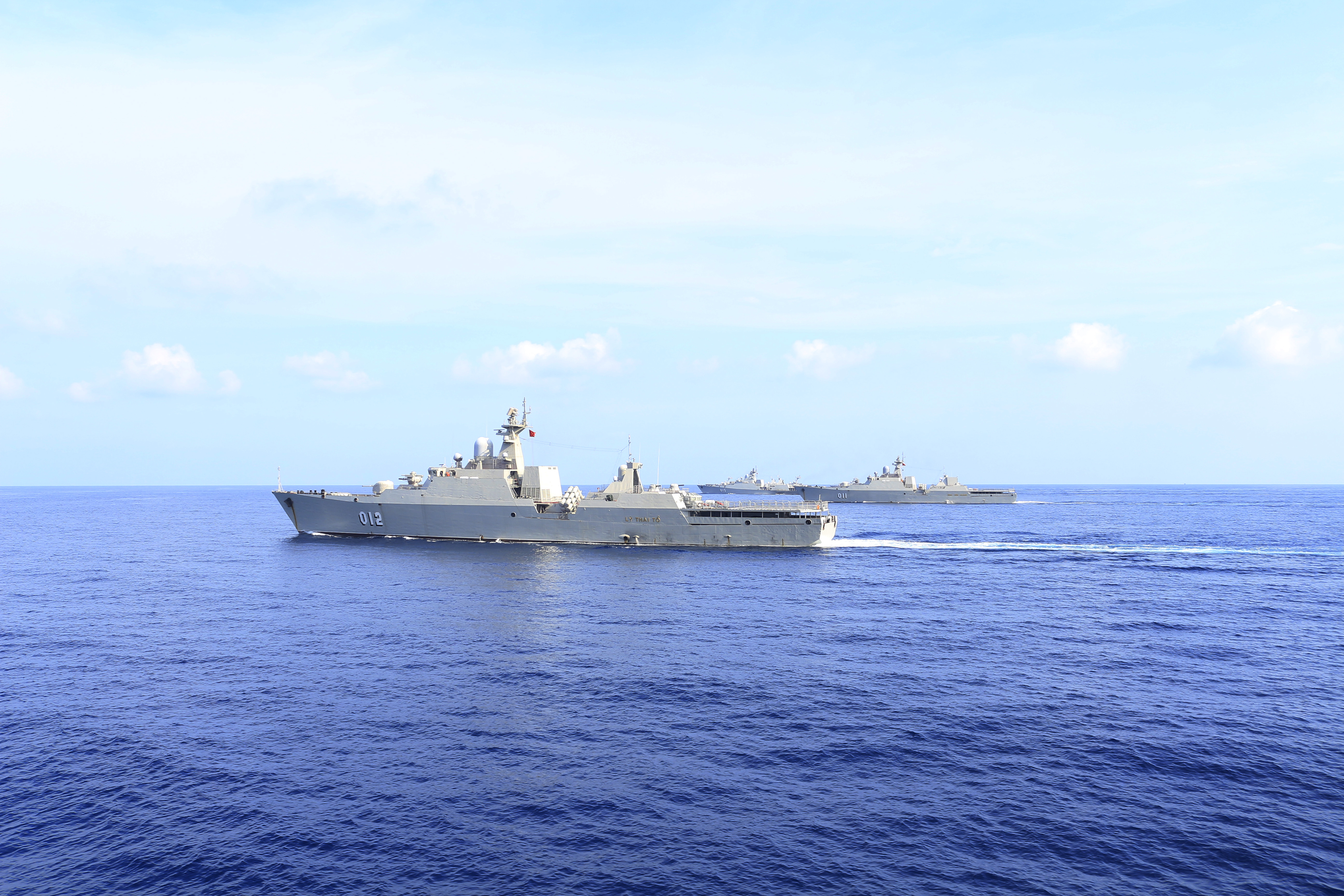 Biên đội tàu Lữ đoàn 162 thực hiện nhiệm vụ trên biển. Ảnh: Lê Ngọc