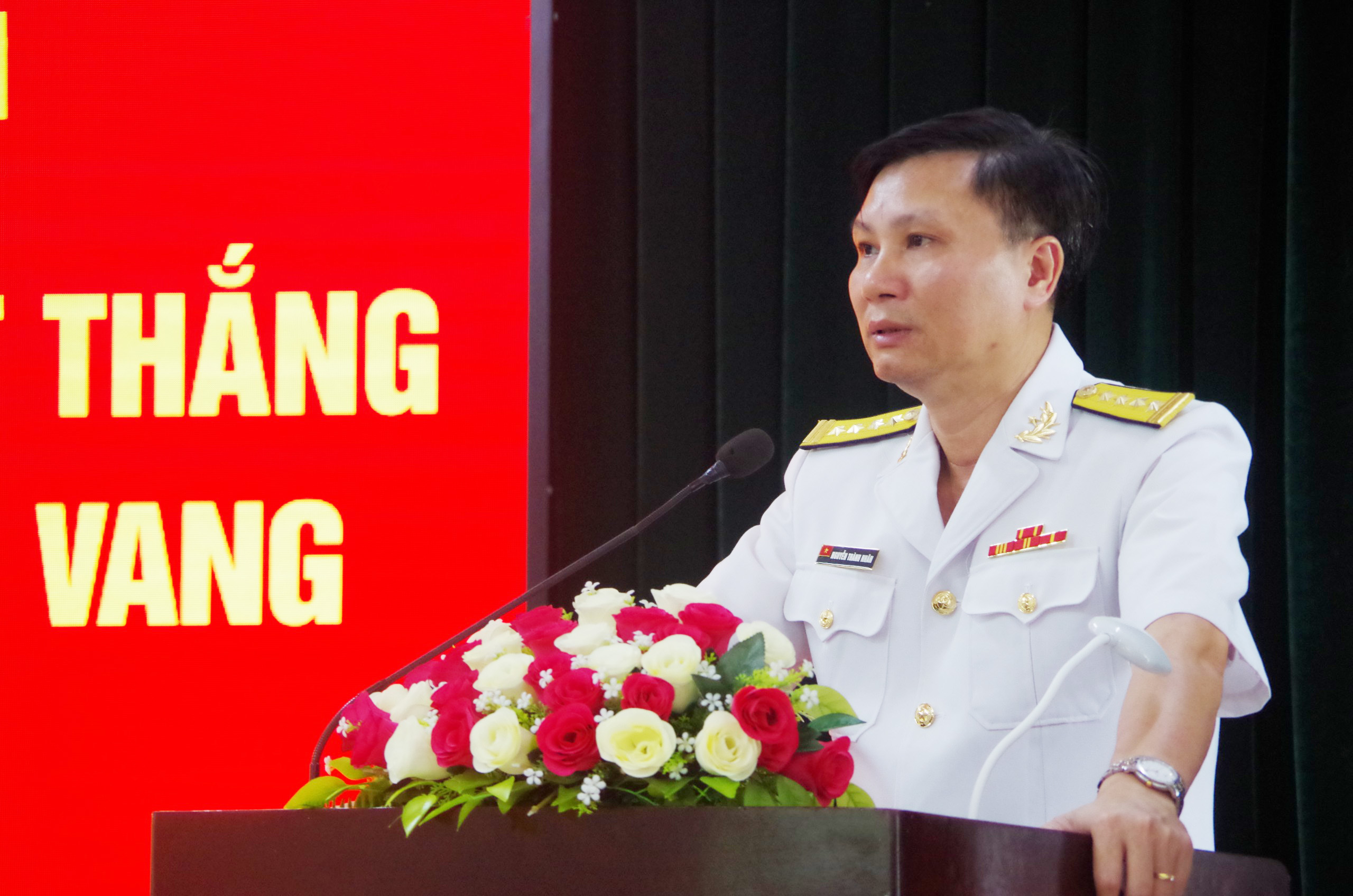 Phát biểu tại buổi lễ, Đại tá Nguyễn Thành Nhân chúc mừng các đồng chí được Đảng và Nhà nước trao tặng Huy chương đồng thời khẳng định những cống hiến to lớn của các quân nhân suốt chặng đường công tác trong Quân đội nói chung, lực lượng Hải quân nói riêng.