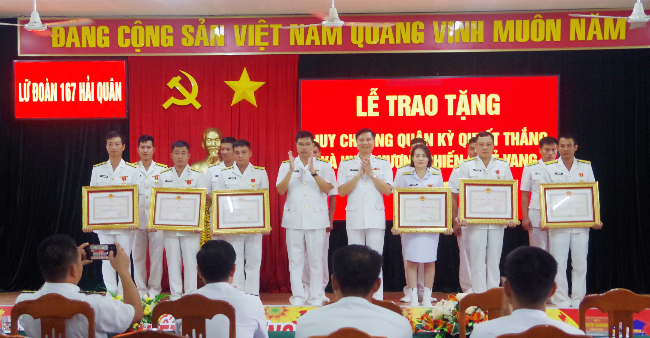 Ngày 9/8, tại TP. Vũng Tàu, tỉnh Bà Rịa – Vũng Tàu, Lữ đoàn 167 (Vùng 2 Hải quân) tổ chức Lễ trao tặng Huy chương Quân kỳ quyết thắng, Huy chương Chiến sĩ vẻ vang hạng Nhất, Nhì, Ba tặng các đồng chí sĩ quan, QNCN của các cơ quan, đơn vị trực thuộc Lữ đoàn. Đại tá Nguyễn Thành Nhân, Bí thư Đảng uỷ, Chính uỷ Lữ đoàn chủ trì. Cùng dự có Đại tá Phạm Tiến Dũng, Lữ đoàn trường.