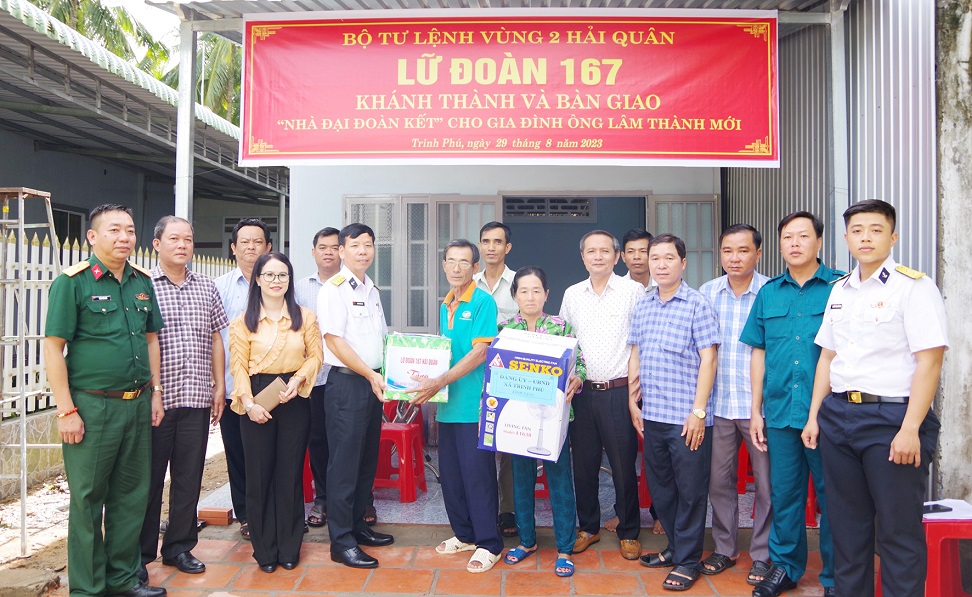 Nhân dịp kỷ niệm 78 năm Cách mạng Tháng Tám và Quốc khánh 2/9, ngày 29/8, tại Ấp 9, xã Trinh Phú, huyện Kế Sách, tỉnh Sóc Trăng, Lữ đoàn 167, Vùng 2 Hải quân tổ chức lễ khánh thành và bàn giao nhà đại đoàn kết cho gia đình ông Lâm Thành Mới.