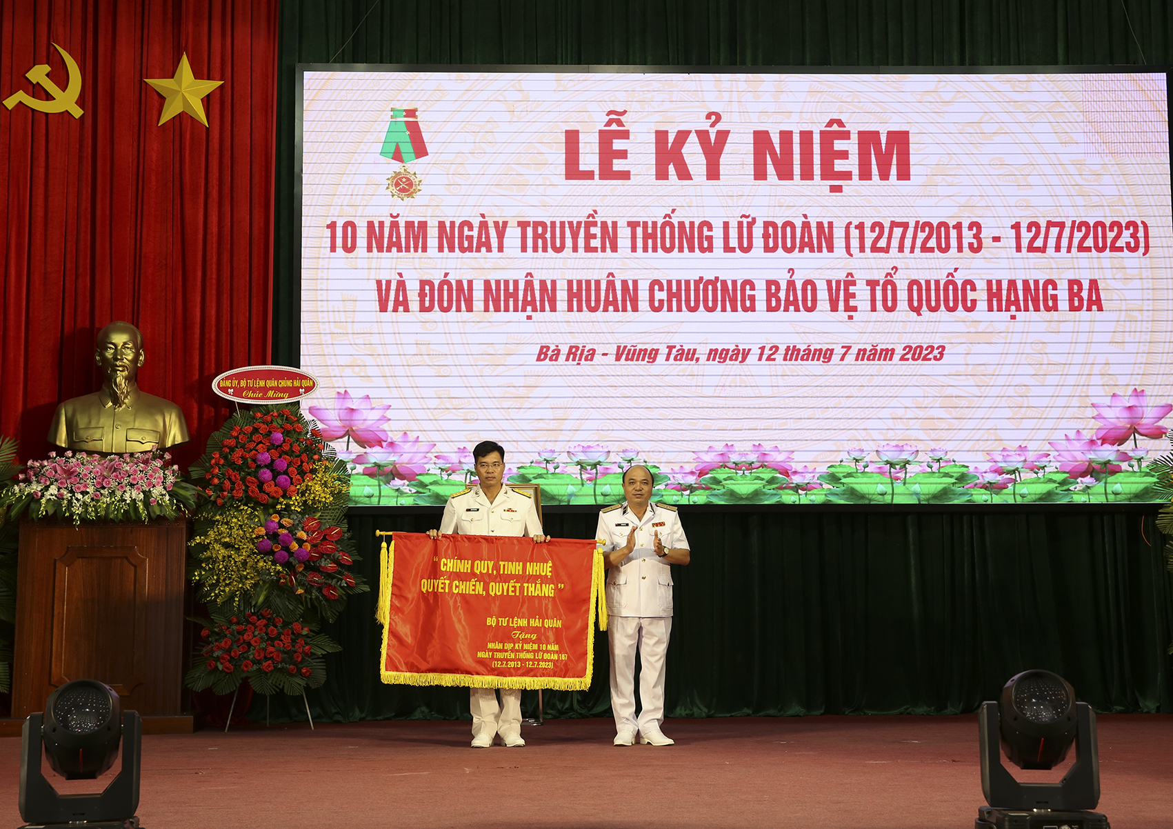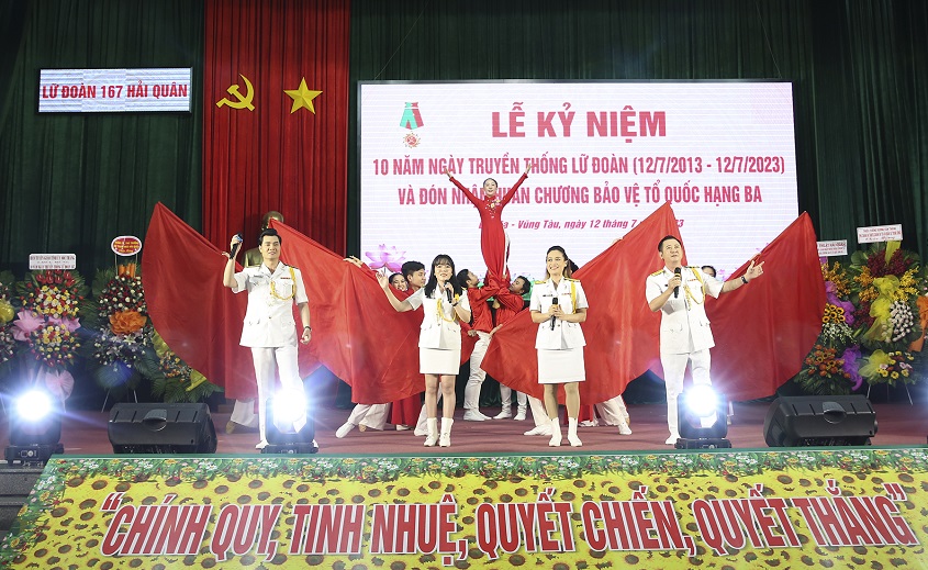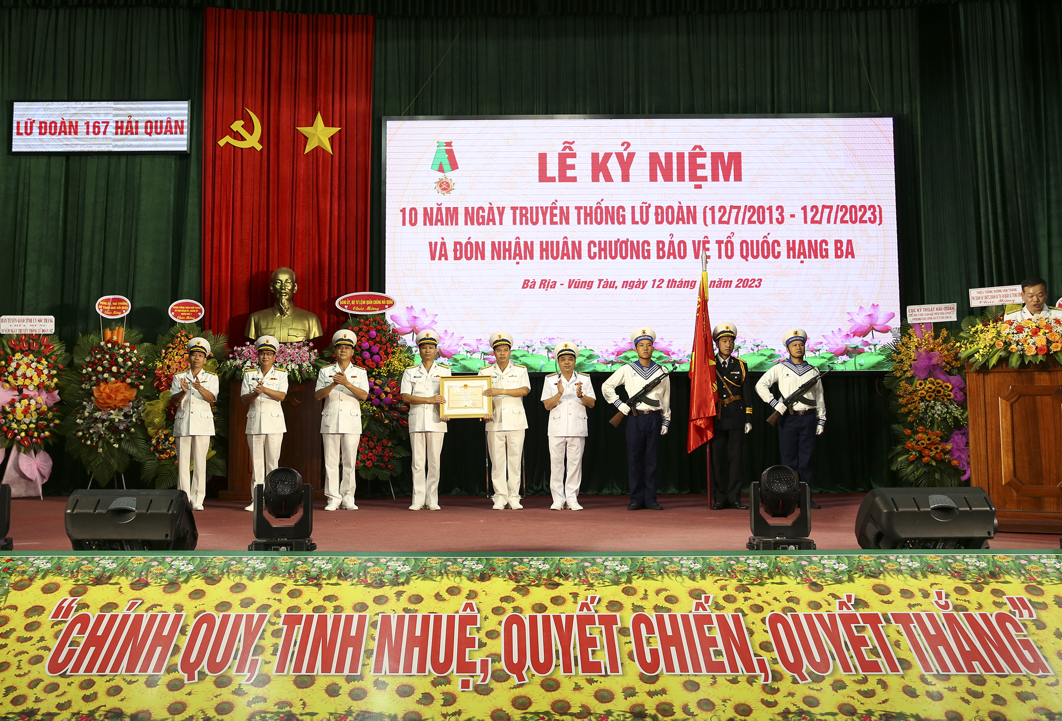 Sáng 12/7, tại TP. Vũng Tàu, tỉnh Bà Rịa - Vũng Tàu, Lữ đoàn 167, Vùng 2 Hải quân tổ chức Lễ kỷ niệm 10 năm Ngày truyền thống (12/7/2013 – 12/7/2023) và đón nhận Huân chương Bảo vệ Tổ quốc hạng Ba. Chuẩn Đô đốc Đỗ Văn Yên, Phó Chính ủy Hải quân dự và trao tặng Huân chương.