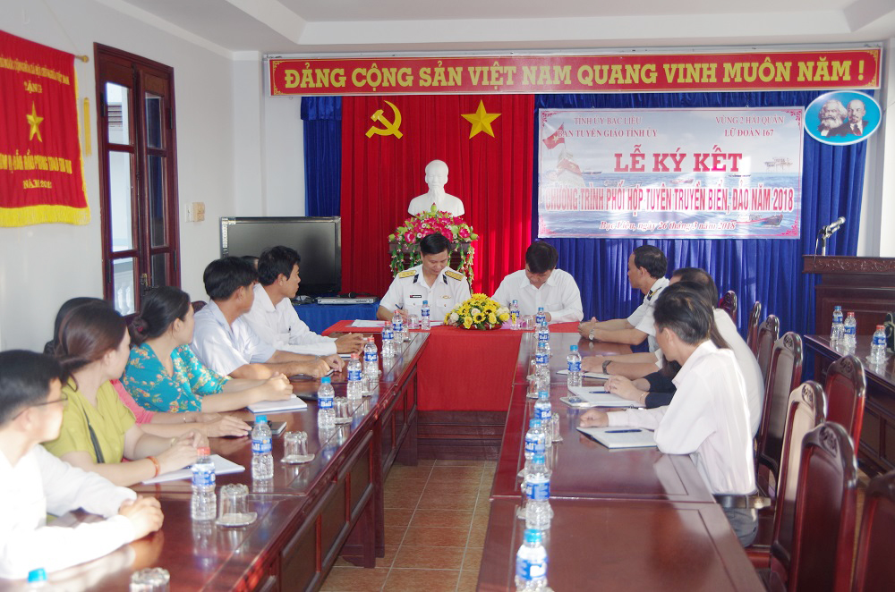 Năm 2018, Lữ đoàn 167 được Đảng ủy, Bộ Tư lệnh Vùng 2 Hải quân giao nhiệm vụ ký kết chương trình phối hợp và tổ chức tuyên truyền biển, đảo trên địa bàn tỉnh Bạc Liêu. Đây là hoạt động nhằm triển khai thực hiện kế hoạch phối hợp tuyên truyền biển, đảo thu hút nguồn lực xây dựng Quân chủng Hải quân chính qui, hiện đại giai đoạn 2016-2020 đã được ký kết giữa Đảng ủy Quân chủng Hải quân với các tỉnh ủy, thành ủy trong cả nước.
