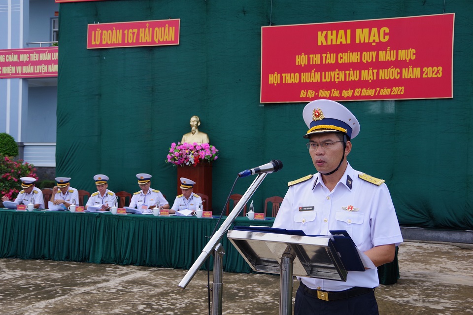 Sáng 3/7, tại TP. Vũng Tàu, tỉnh Bà Rịa-Vũng Tàu, Lữ đoàn 167, Vùng 2 Hải quân tổ chức khai mạc Hội thi tàu chính quy mẫu mực, Hội thao huấn luyện tàu mặt nước năm 2023. Đại tá Nguyễn Việt Anh, Phó Tham mưu trưởng Vùng dự và chỉ đạo. Thượng tá Phạm Tiến Dũng, Lữ đoàn trưởng chủ trì.