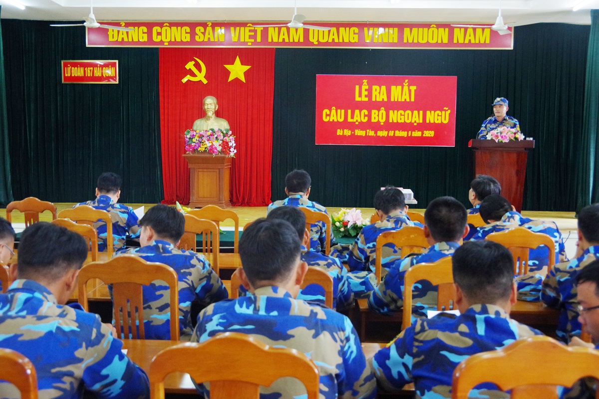 Chiều 8-9, tại TP. Vũng Tàu, Lữ đoàn 167, Vùng 2 Hải quân tổ chức Lễ ra mắt Câu lạc bộ ngoại ngữ. Thượng tá Nguyễn Thành Nhân, Bí thư Đảng ủy, Chính ủy Lữ đoàn dự và phát biểu.