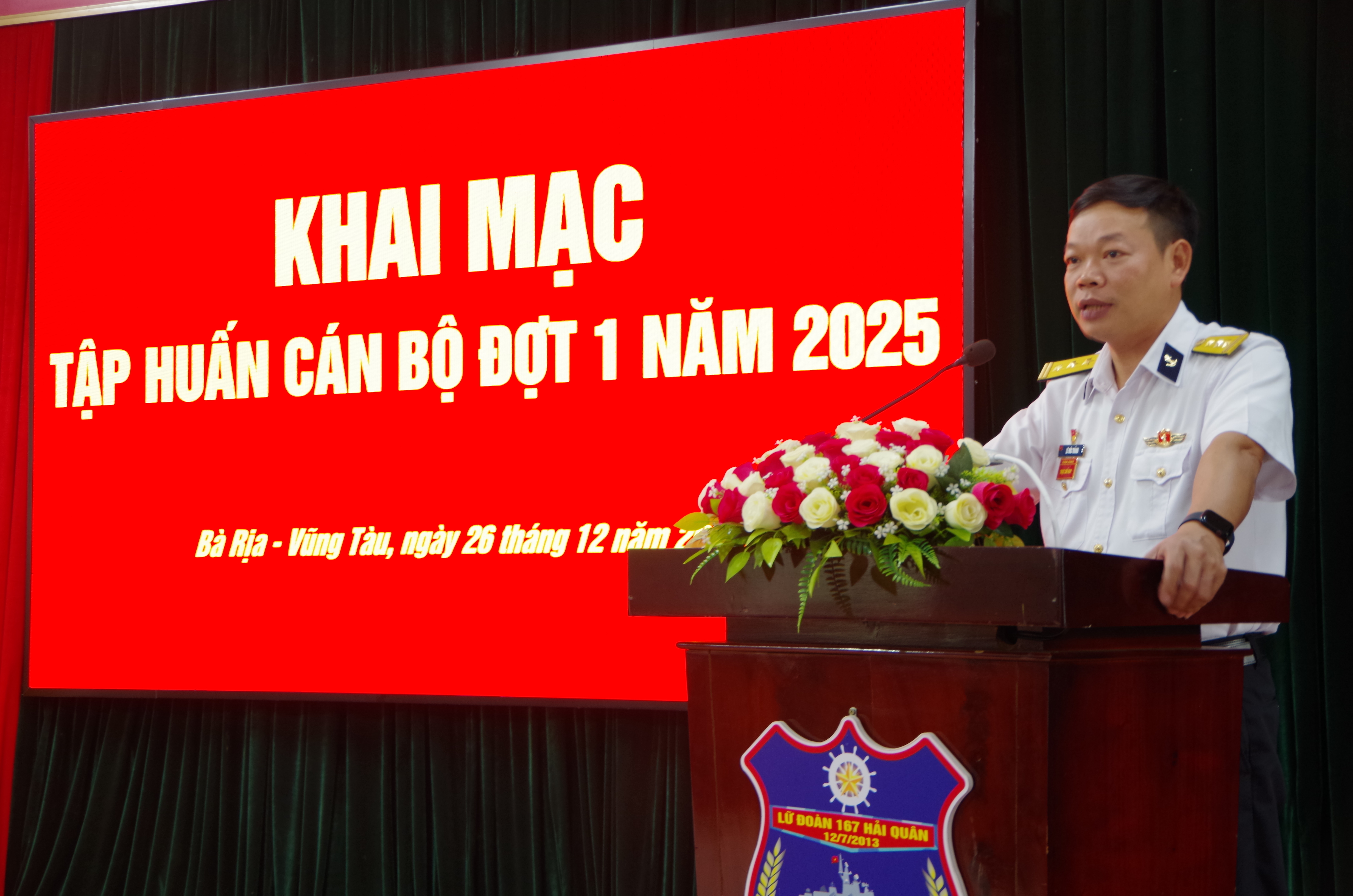 Sáng 26/12, tại TP. Vũng Tàu, tỉnh Bà Rịa-Vũng Tàu, Lữ đoàn 167 (Vùng 2 Hải quân) tổ chức tập huấn cán bộ năm 2025. Thượng tá Lê Đức Thảnh, Phó Lữ đoàn trưởng, Tham mưu trưởng chỉ đạo.