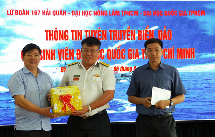 Chiều 6/8, Lữ đoàn 167, Vùng 2 Hải quân tổ chức thông tin về biển, đảo cho hơn 100 cán bộ, sinh viên Trường Đại học Quốc gia TP. Hồ Chí Minh. Tới dự có Đại tá Đỗ Hồng Duyên, Chủ nhiệm Chính trị Vùng 2 Hải quân; TS. Đỗ Đại Thắng, Giám đốc Trung tâm Giáo dục QPAN, Trường Đại học Quốc gia TP. Hồ Chí Minh.