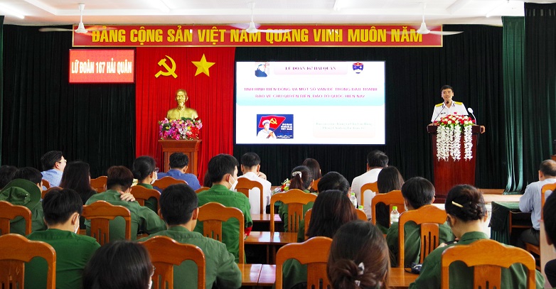 Tại buổi thông tin, các sinh viên được nghe về vị trí, vai trò, tầm quan trọng của biển, đảo Việt Nam trong sự nghiệp xây dựng và bảo vệ Tổ quốc; các quan điểm, chủ trương của Đảng, Nhà nước trong bảo vệ chủ quyền biển, đảo; những chiến công, thành tích tiêu biểu của Quân chủng Hải quân, Vùng 2 và Lữ đoàn 167 trong đấu tranh bảo vệ chủ quyền biển, đảo của Tổ quốc...