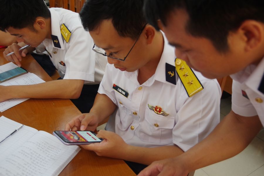 Cán bộ, chiến sĩ đơn vị cũng đã thi nhận thức pháp luật trực tuyến trên ứng dụng nền tảng số mở trong "Ngày pháp luật".