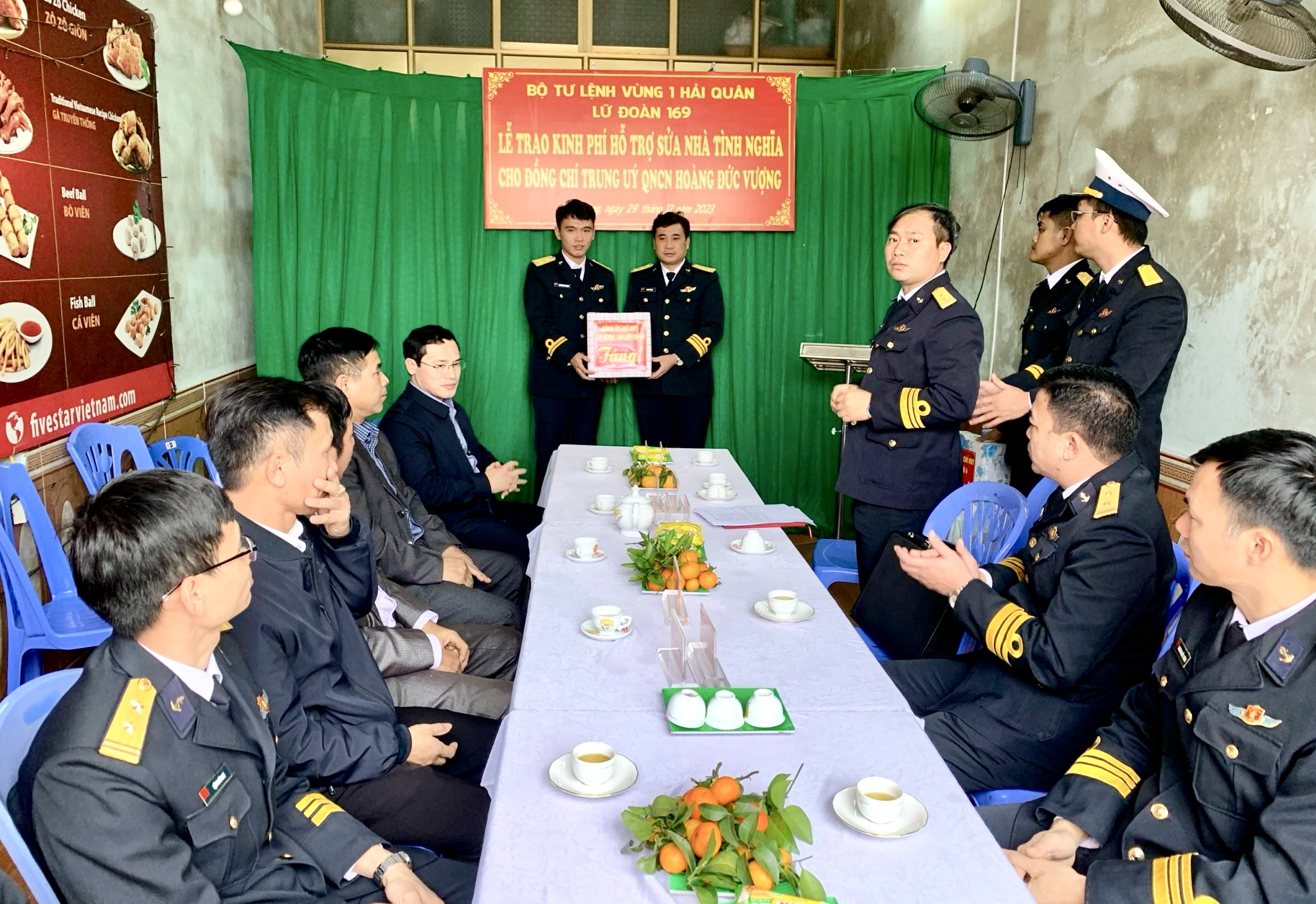 Chiều 29/12, tại Hải Phòng, Lữ đoàn 169, Vùng 1 Hải quân phối hợp với chính quyền địa phương tổ chức bàn giao kinh phí hỗ trợ sửa chữa nhà tình nghĩa cho gia đình Trung úy QNCN Hoàng Đức Vượng, Nhân viên máy, Tàu 513, Hải đội 4, Lữ đoàn 169. Trung tá Nguyễn Văn Hải, Phó Chính ủy Lữ đoàn chủ trì.