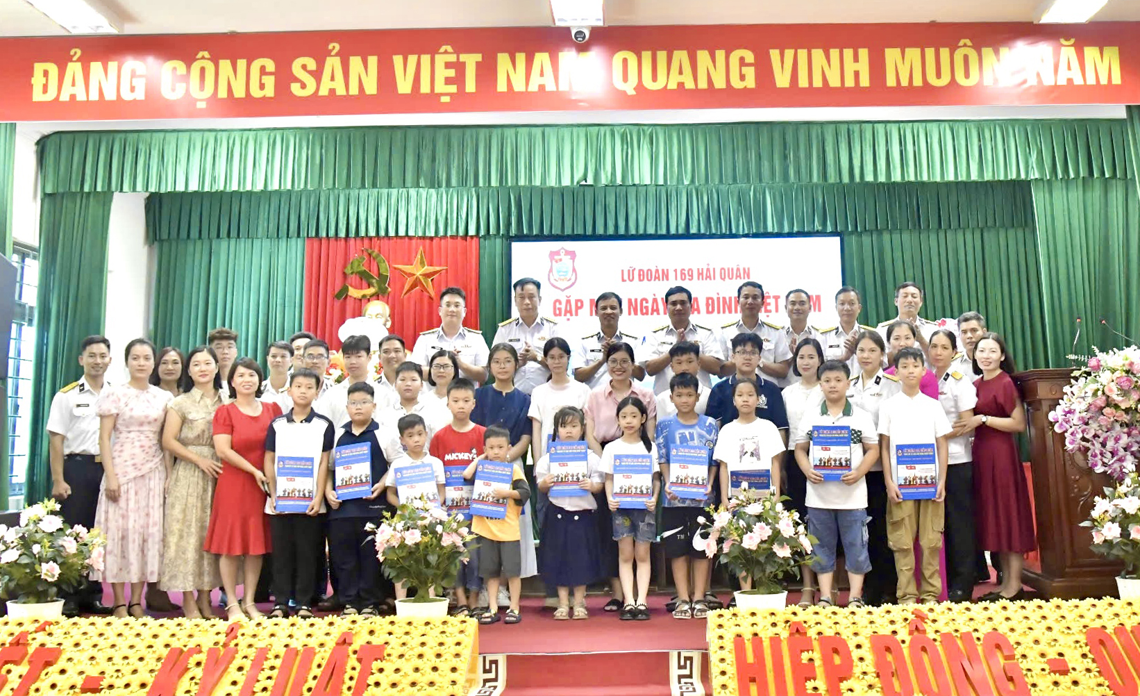 Nhân Ngày gia đình Việt Nam, sáng 28/6, tại huyện Vân Đồn, tỉnh Quảng Ninh, Lữ đoàn 169, Vùng 1 Hải quân tổ chức gặp mặt tặng quà các cháu là con của SQ, QNCN trong Lữ đoàn đạt danh hiệu học sinh giỏi, xuất sắc các cấp và đạt giải cao trong các cuộc thi năm học 2024-2025.