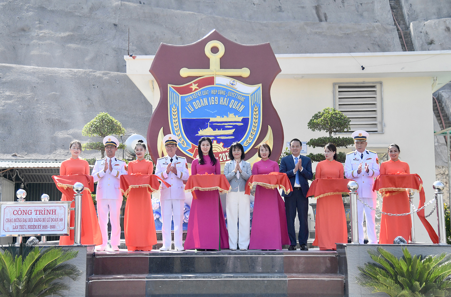Các đại biểu cắt băng khánh thành công trình lôgô Lữ đoàn 169