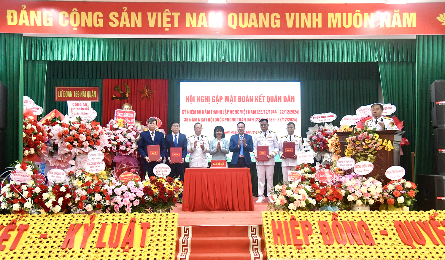 Tại buổi gặp mặt, Lữ đoàn 169 tổ chức ký kết chương trình phối hợp hoạt động với xã Vạn Yên và xã Đài Xuyên của huyện Vân Đồn.