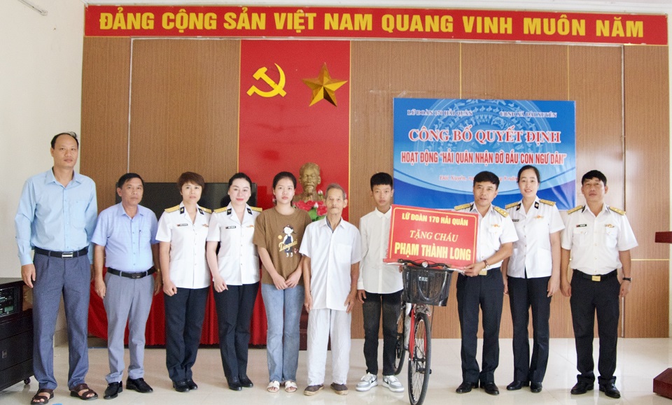 Lữ đoàn 170 nhận đỡ đầu cháu Phạm Thành Long, 13 tuổi, ở thôn Ký Vầy, xã Đài Xuyên, huyện Vân Đồn. Cháu Long có bố là ngư dân bị chết do đắm tàu khi đang đánh cá trên biển, gia đình cháu thuộc diện hộ cận nghèo.