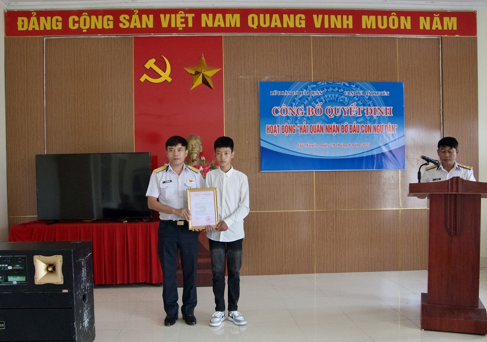 Ngày 29/8, tại Thôn Ký Vầy, xã Đài Xuyên, huyện Vân Đồn, tỉnh Quảng Ninh, Lữ đoàn 170, Vùng 1 Hải quân tổ chức công bố, trao quyết định “Hải quân nhận đỡ đầu con ngư dân”.
