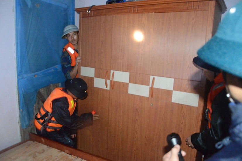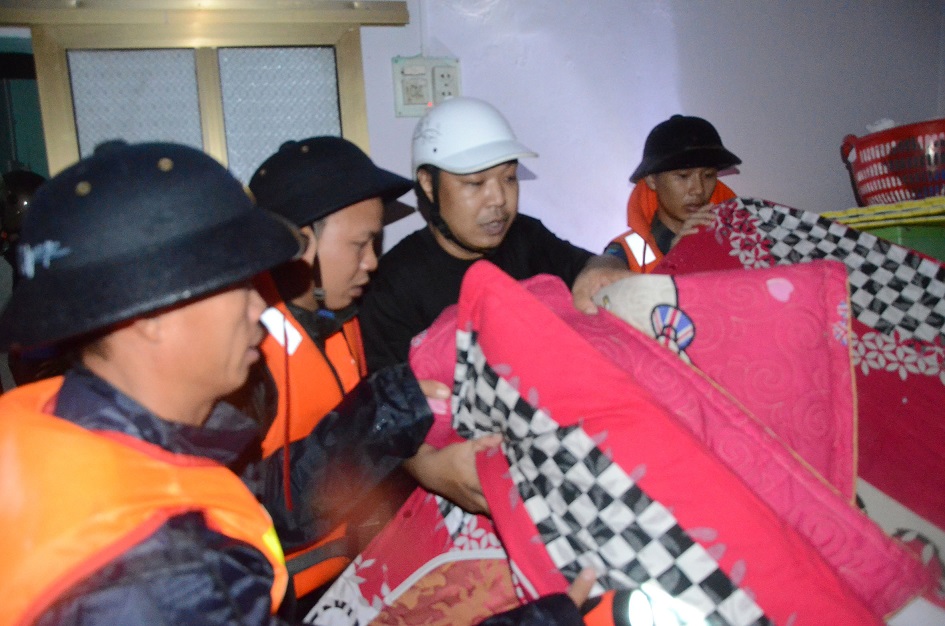 Mặc dù đêm tối, đường ngập sâu có chỗ ngập hơn 1 mét nước, nhưng cán bộ, chiến sĩ đã tiếp cận vào các hộ dân chống lụt: Kê cao các đồ dùng, vật dụng sinh hoạt gia đình như bàn ghế, tủ kệ, xe máy... Đến 22 giờ 30 phút, cán bộ, chiến sĩ đơn vị đã kết hợp với chính quyền, nhân dân sơ tán, vận chuyển, kê cao đồ dùng sinh hoạt cho hàng chục hộ dân phường Cao Thắng.
