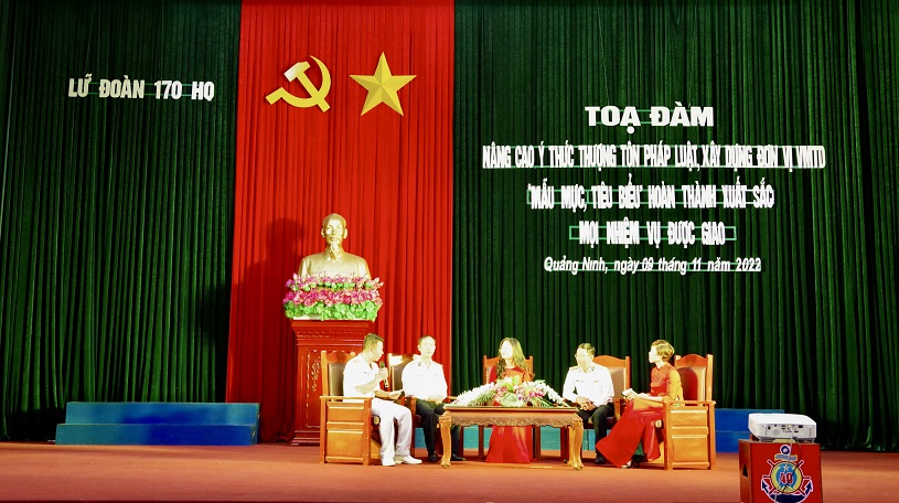 Sáng 9/11, tại Quảng Ninh, Lữ đoàn 170, Vùng 1 Hải quân tổ chức buổi tọa đàm hưởng ứng Ngày pháp luật Việt Nam 9/11. Dự, chỉ đạo có Thượng tá Đào Trọng Hiếu, Phó Chính ủy Lữ đoàn; cán bộ, giáo viên Trường Tiểu học Minh Hà cùng toàn thể cán bộ, chiến sĩ trong Lữ đoàn.
