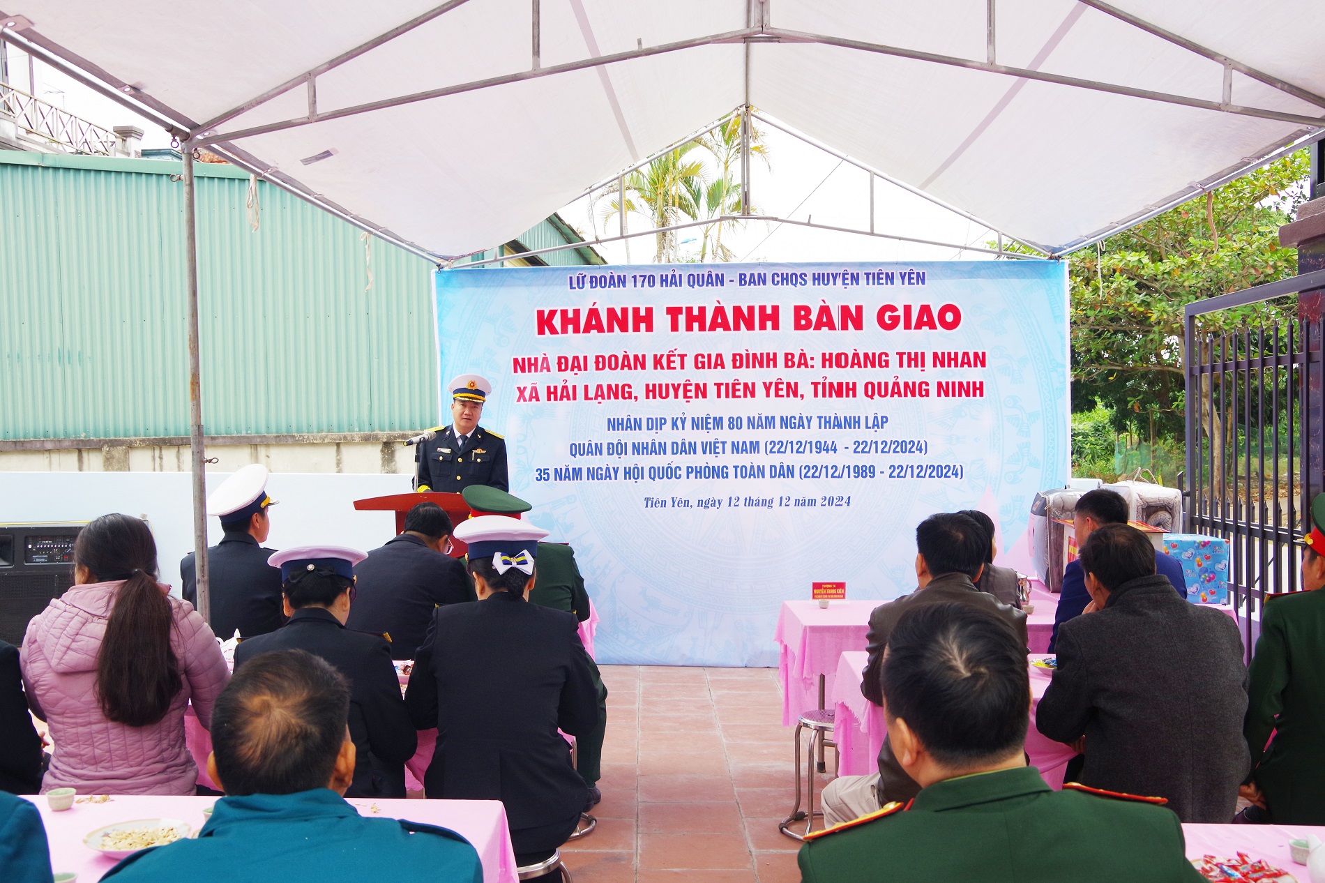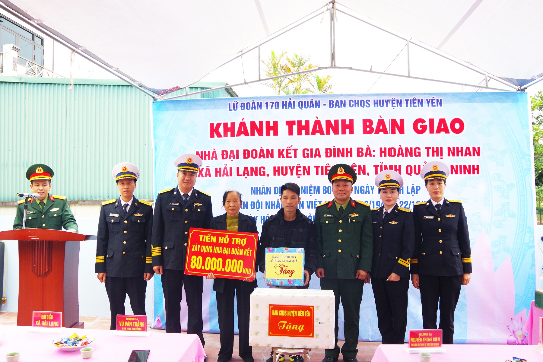 Ngày 12/12, tại xã Hải Lạng, huyện Tiên Yên, tỉnh Quảng Ninh, Lữ đoàn 170, Vùng 1 Hải quân phối hợp với Ban Chỉ huy quân sự huyện Tiên Yên cùng cấp uỷ, chính quyền, đoàn thể và nhân dân xã Hải Lạng tổ chức khánh thành và bàn giao nhà đại đoàn kết tặng gia đình bà Hoàng Thị Nhan. Thượng tá Nguyên Trung Kiên, Phó Chính uỷ Lữ đoàn 170 chủ trì buổi bàn giao.