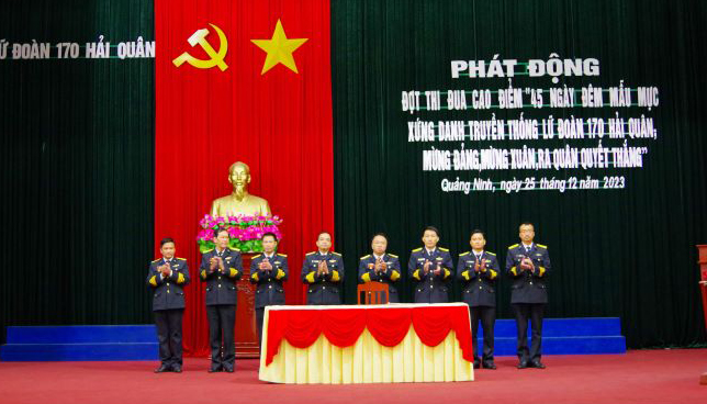 Ngày 25/12, tại Quảng Ninh, Đảng ủy Lữ đoàn 170, Vùng 1 Hải quân tổ chức phát động phong trào thi đua cao điểm “45 ngày đêm mẫu mực, xứng danh truyền thống Lữ đoàn 170 Hải quân, mừng Đảng, mừng xuân, ra quân quyết thắng năm 2023”.