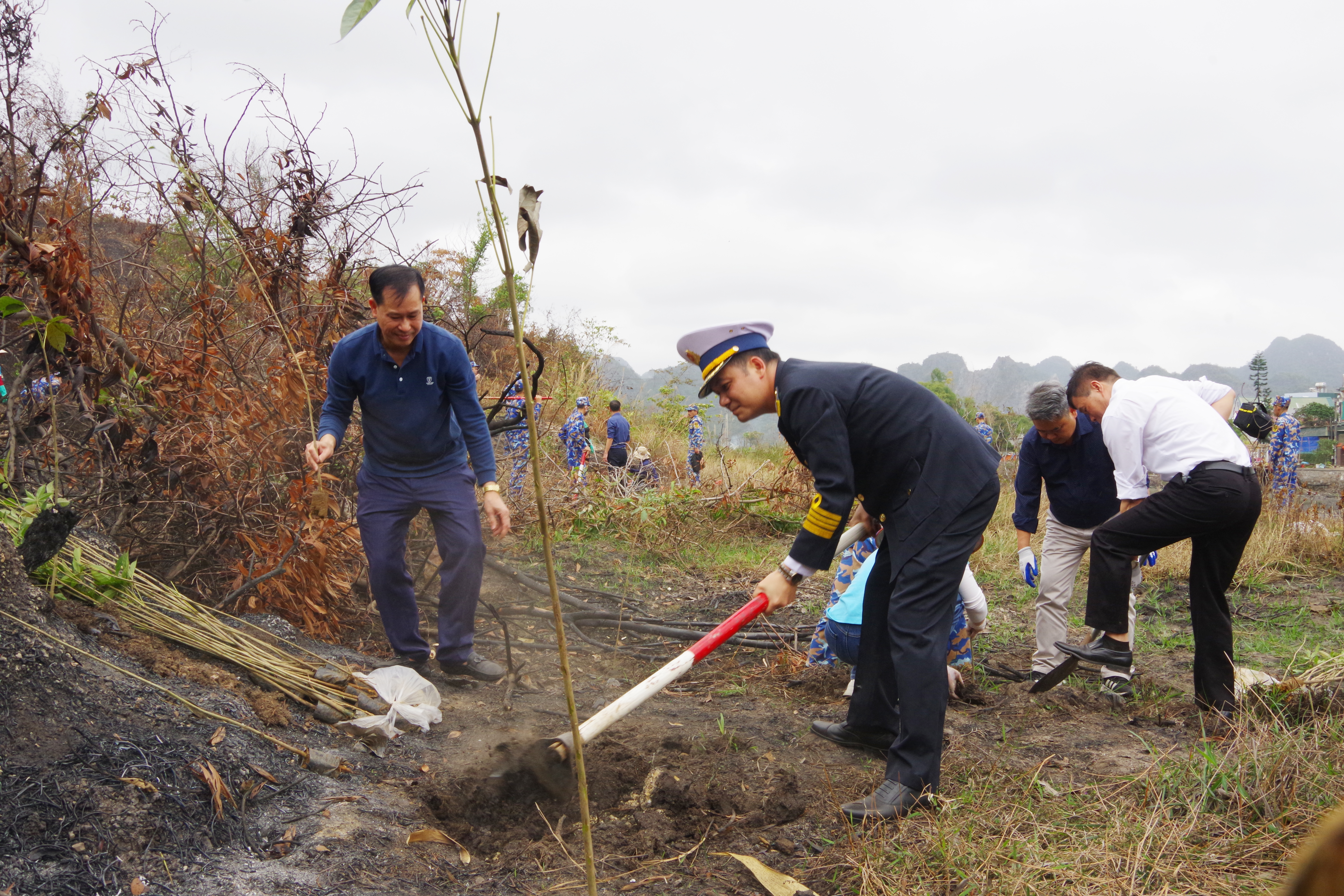 Sáng 1/3, tại TP Hạ Long, tỉnh Quảng Ninh, Lữ đoàn 170, Vùng 1 Hải quân phối hợp với Đảng ủy, UBND phường Hà Tu tổ chức trồng, thay thế cây xanh, cây có hoa, cây bản địa nhằm khôi phục diện tích rừng bị ảnh hưởng do bão số 3 năm 2024 (Yagi) gây ra.