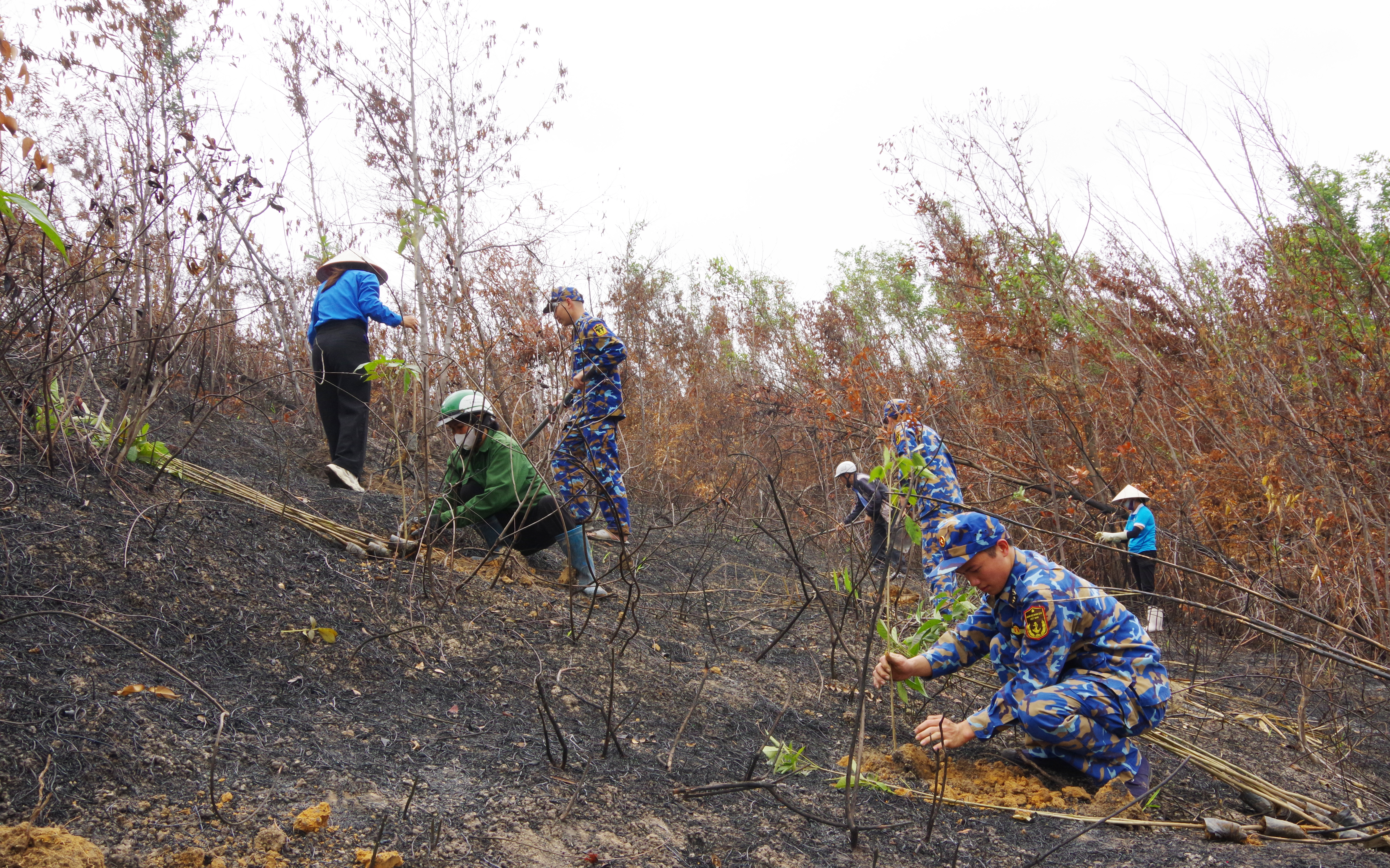 Dịp này, các đơn vị đã tiến hành trồng mới hơn 1.000 cây kèn hồng, phủ xanh hơn 2 hécta đất rừng bị ảnh hưởng bởi bão và cháy rừng.