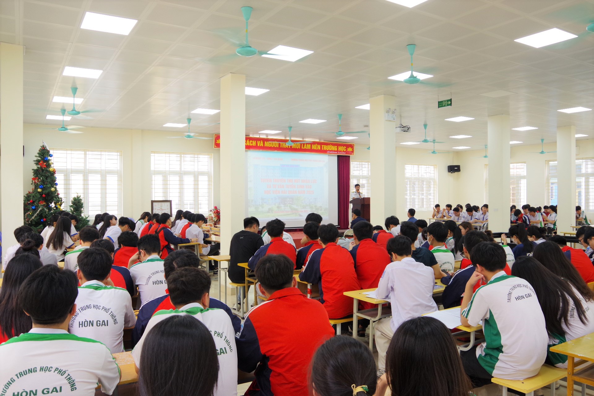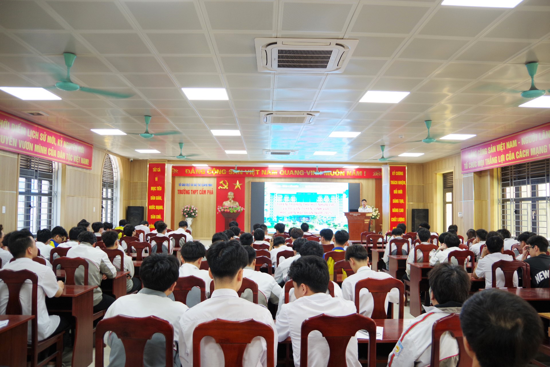 Quang cảnh buổi tuyên truyền tại trường THPT Cẩm Phả