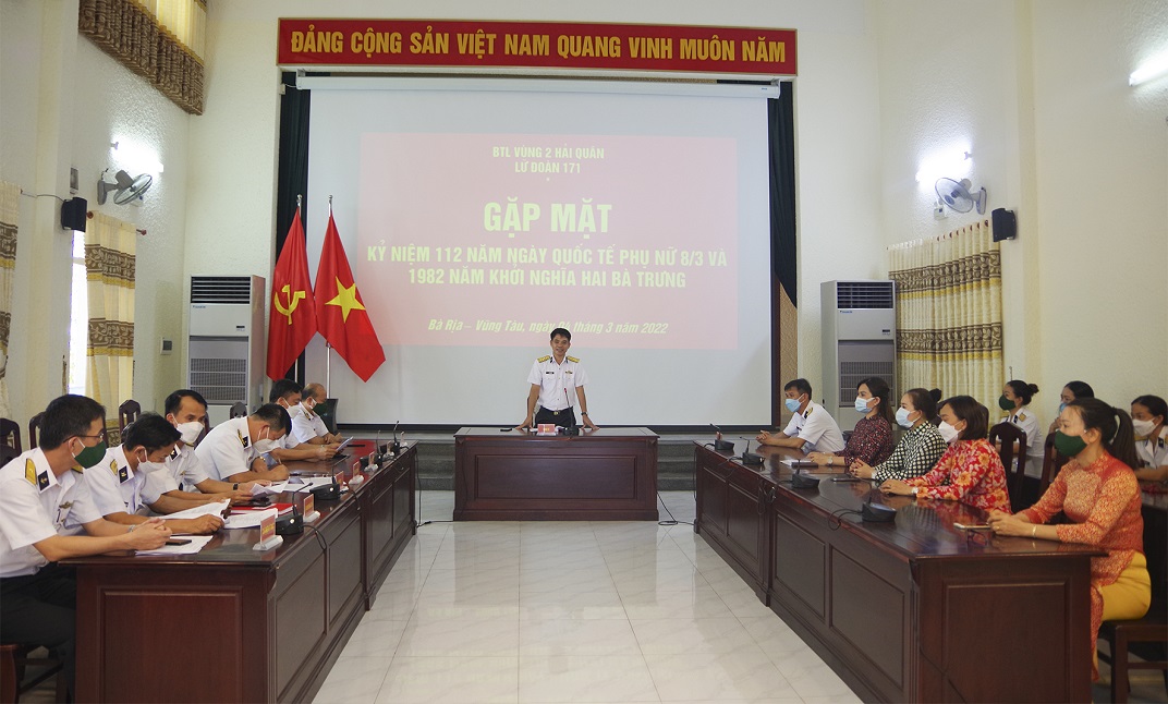 Chiều 4/3, tại TP. Vũng Tàu, tỉnh Bà Rịa-Vũng Tàu, Lữ đoàn 171, Vùng 2 Hải quân tổ chức gặp mặt hội viên Hội phụ nữ trong đơn vị nhân kỷ niệm 112 năm Ngày Quốc tế phụ nữ và 1982 năm khởi nghĩa Hai Bà Trưng. Dự buổi gặp mặt có Đại tá Bùi Văn Bền, Chính ủy Lữ đoàn.
