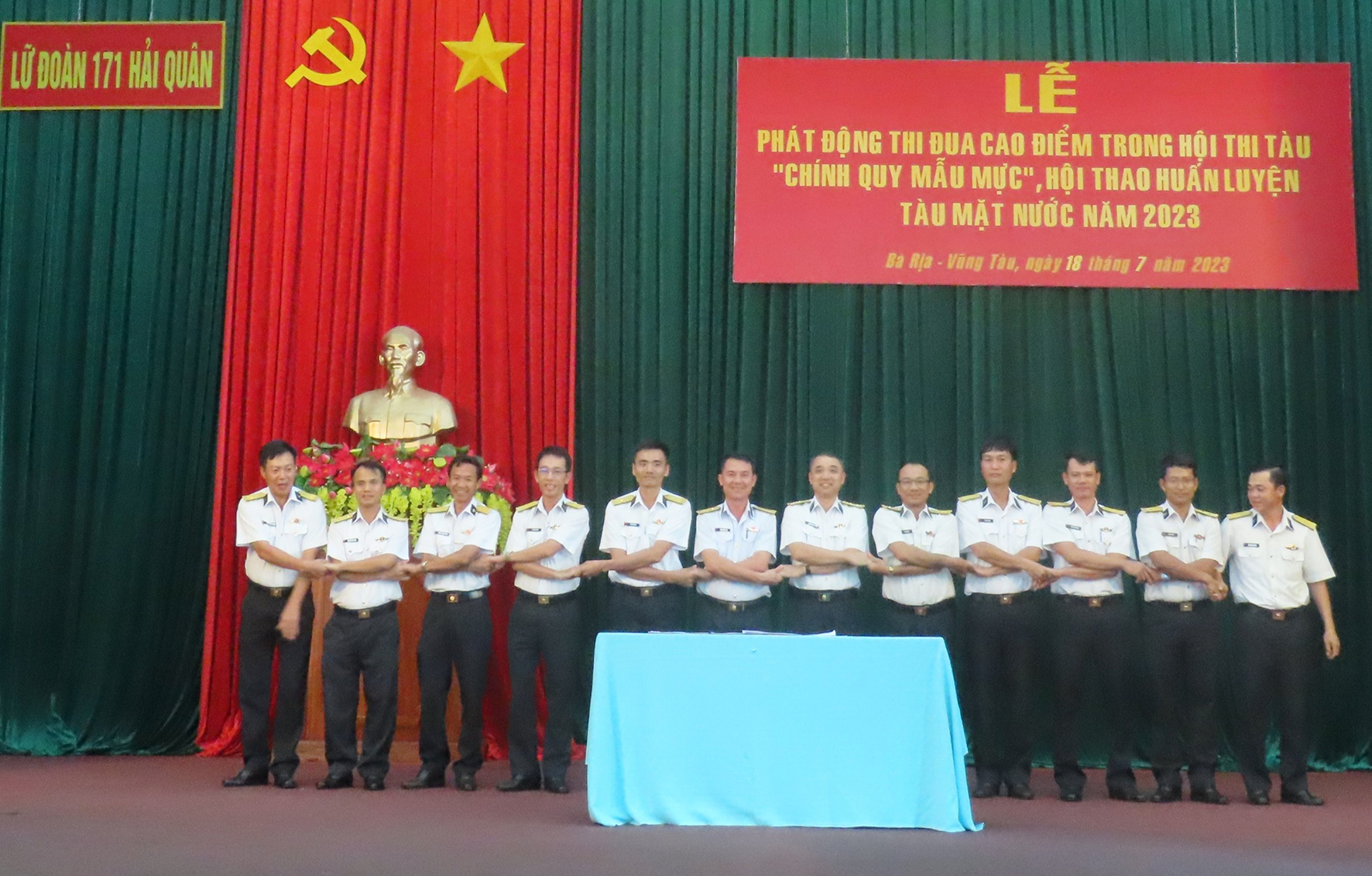 Chiều 18/7, tại TP. Vũng Tàu, tỉnh Bà Rịa-Vũng Tàu, Lữ đoàn 171, Vùng 2 Hải quân tổ chức phát động thi đua trong Hội thi tàu chính quy, mẫu mực, Hội thao huấn luyện tàu mặt nước năm 2023. Thượng tá Phạm Ngọc Quý, Bí thư Đảng ủy, Chính ủy Lữ đoàn chủ trì.
