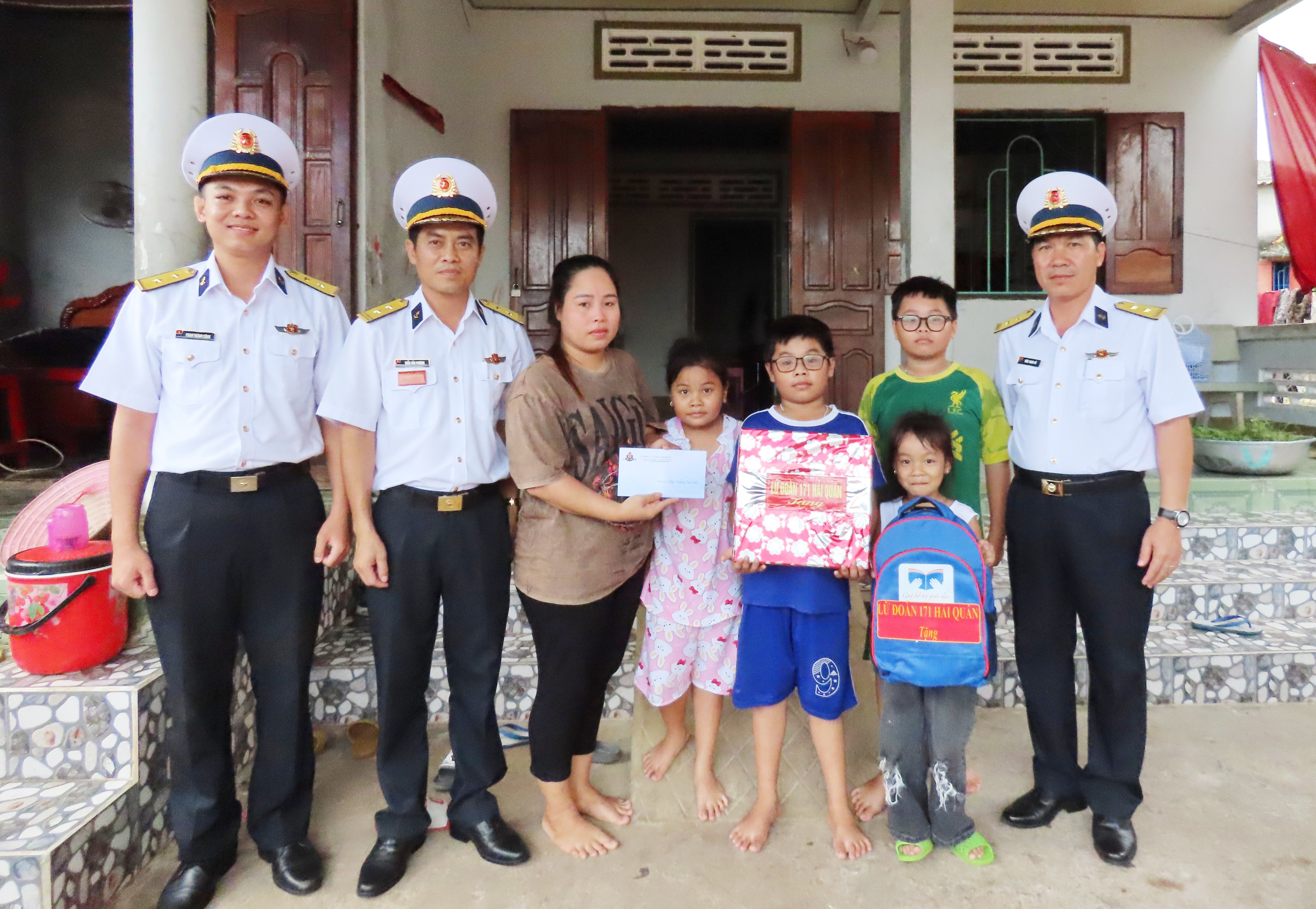 Chiều 14/7, tại huyện Đất Đỏ, tỉnh Bà Rịa - Vũng Tàu, đại diện Lữ đoàn 171, Vùng 2 Hải quân đã đến thăm, tặng quà 2 cháu Nguyễn Lê Phát Lộc và Hoàng Tuấn Anh. Đây là 2 cháu được Lữ đoàn nhận đỡ đầu trong năm 2023.