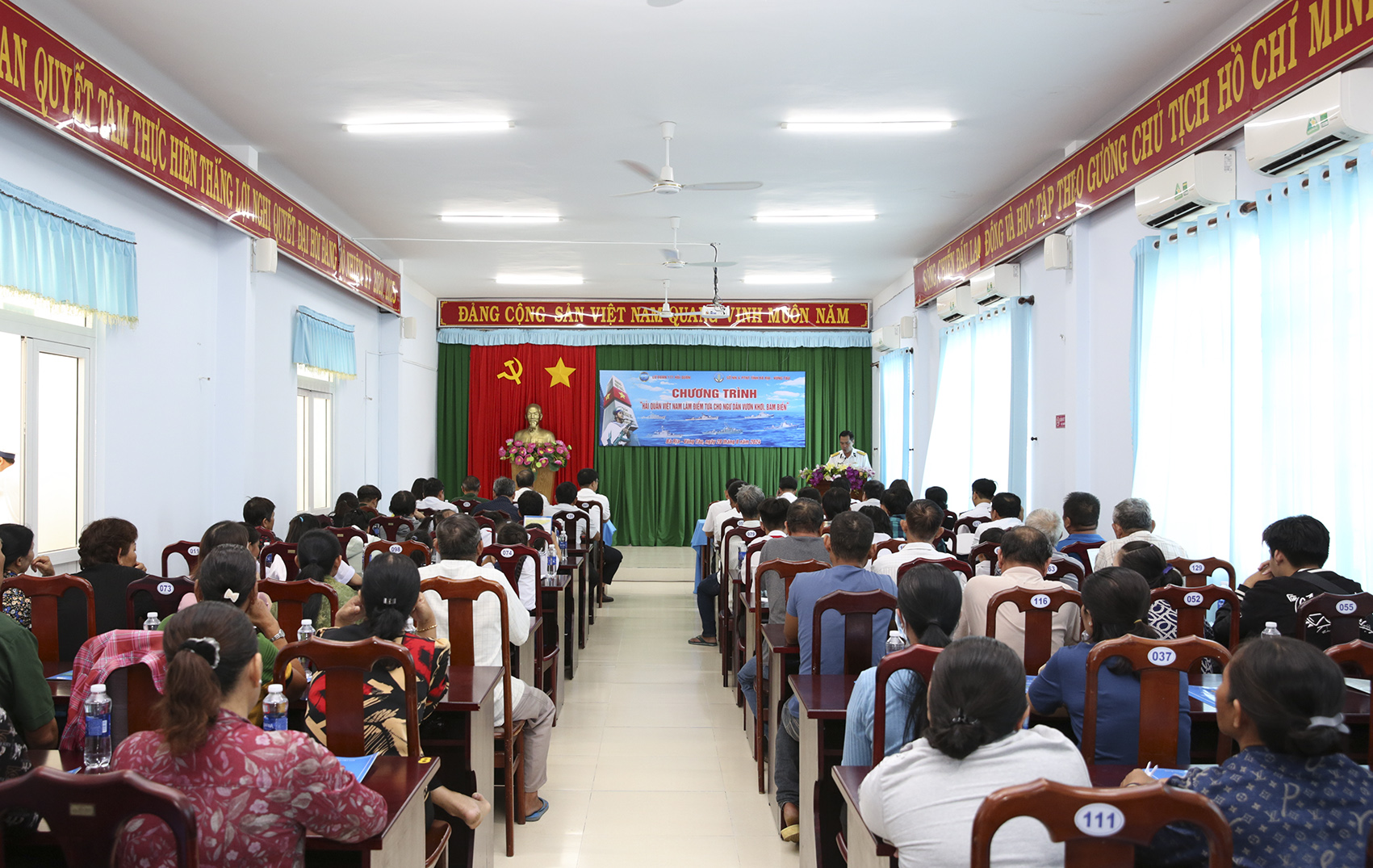 Tại chương trình, các ngư dân được cán bộ Lữ đoàn thông tin về tình hình khai thác hải sản của bà con ngư dân trên biển; tọa độ, tần số liên lạc tại các âu tàu, làng chài, trung tâm dịch vụ hậu cần - kỹ thuật trên huyện đảo Trường Sa, tỉnh Khánh Hoà; hướng dẫn cách liên lạc qua đài canh của Quân chủng Hải quân…