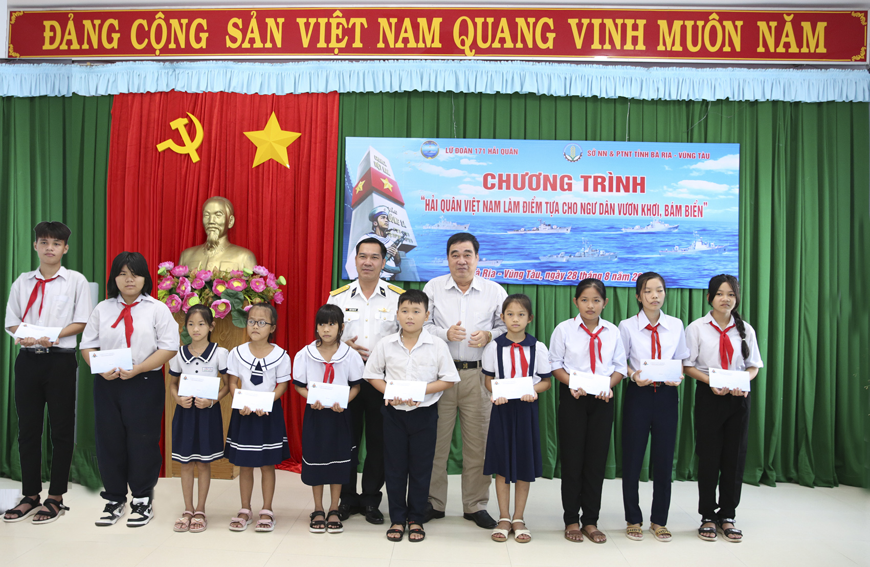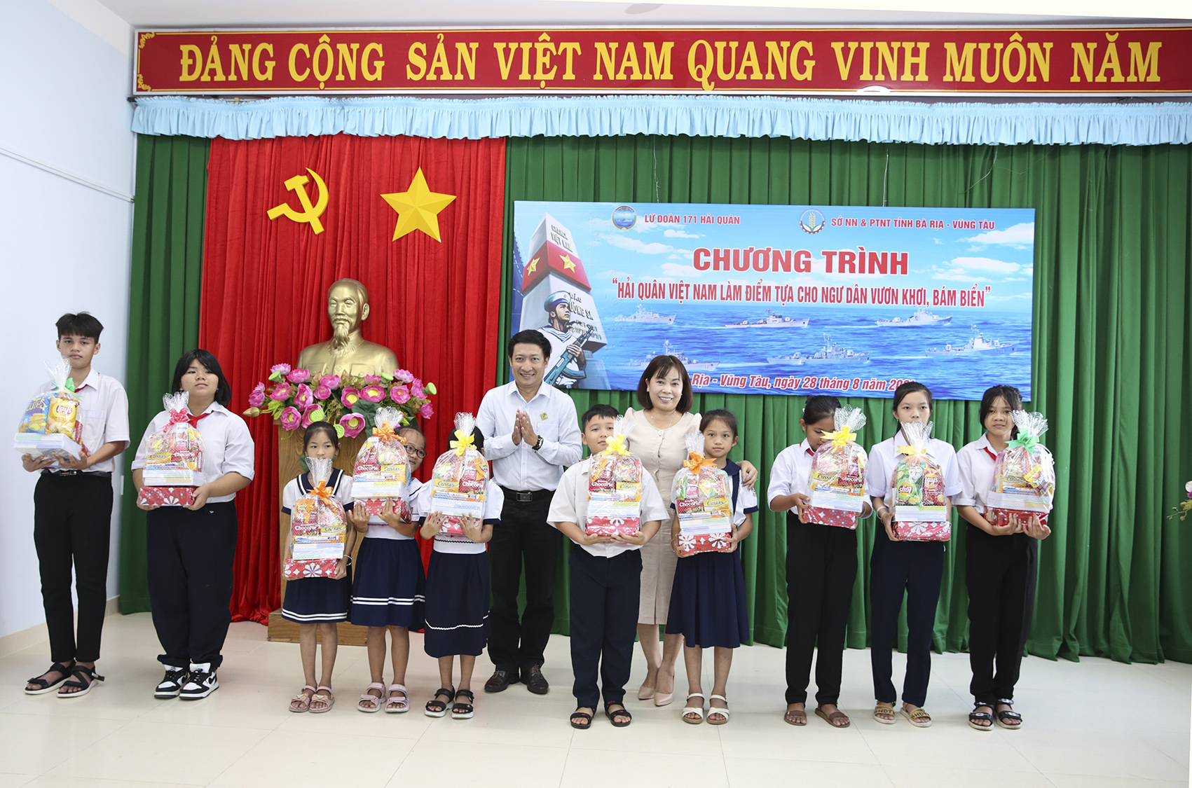 Nhân dịp này, Lữ đoàn 171 đã tặng 100 áo phao, 200 cờ Tổ quốc, cùng với các mạnh thường quân tặng 20 phần quà cho các cháu học sinh là con ngư dân, 10 phần quà cho ngư dân có hoàn cảnh khó khăn trên địa bàn xã Lộc An và thị trấn Phước Hải, huyện Đất Đỏ; tặng quà 2 cháu là con ngư dân mà Lữ đoàn nhận đỡ đầu.