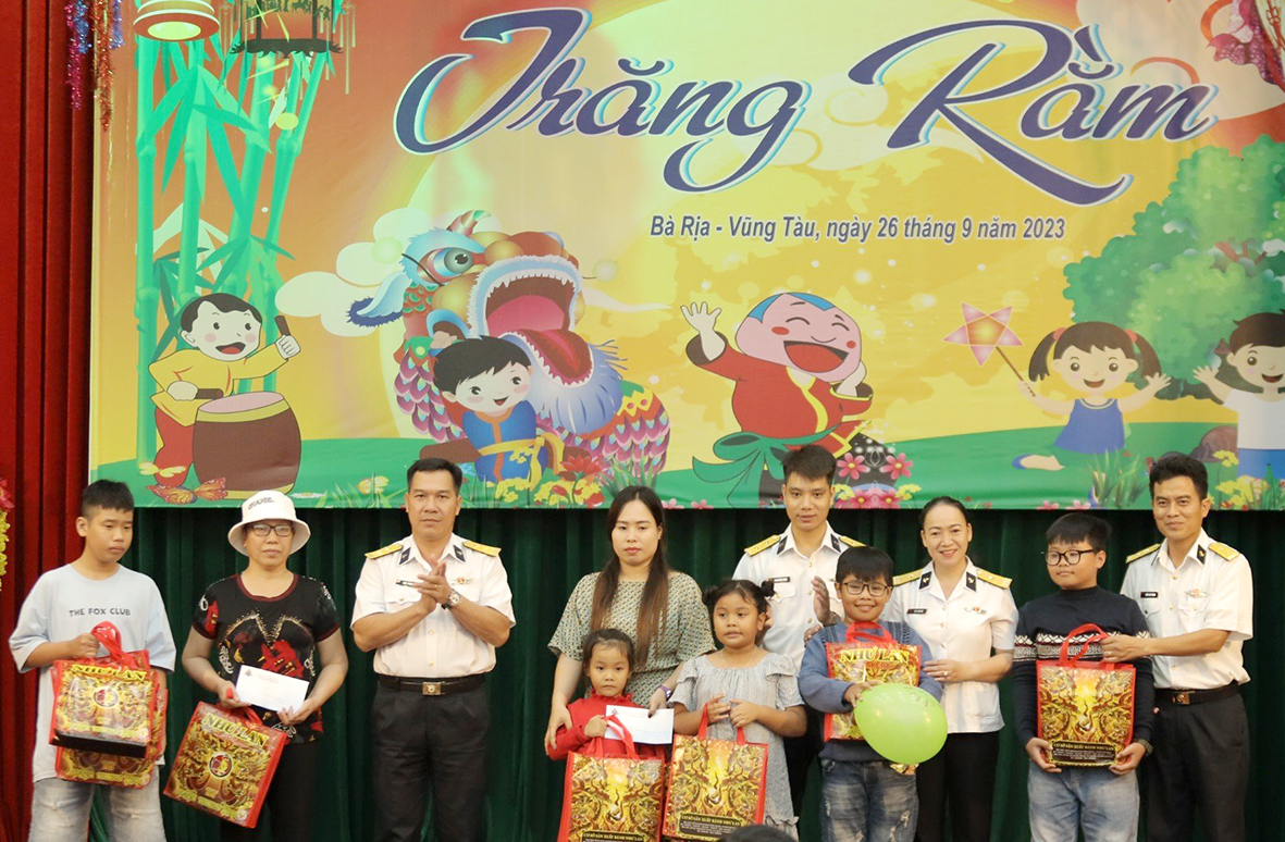 Đêm hội trăng rằm lung linh sắc màu với lồng đèn ông sao, cùng các tiết mục văn nghệ, múa lân… đã thu hút đông đảo cán bộ, nhân viên và các cháu đến dự (có 2 cháu là con ngư dân mà Lữ đoàn nhận đỡ đầu cũng đến tham gia). Ban tổ chức đã trao 140 phần quà tặng cho 140 cháu là con cán bộ, nhân viên đơn vị.