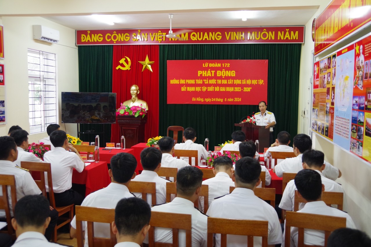Chiều 24/5, tại Đà Nẵng, Lữ đoàn 172, Vùng 3 Hải quân tổ chức phát động hưởng ứng phong trào “Cả nước thi đua xây dựng xã hội học tập, đẩy mạnh học tập suốt đời giai đoạn 2023-2030”. Thượng tá Nguyên Xuân Hòa, Bí thư Đảng ủy, Chính ủy, Chủ tịch Hội đồng Thi đua – Khen thưởng Lữ đoàn chủ trì.
