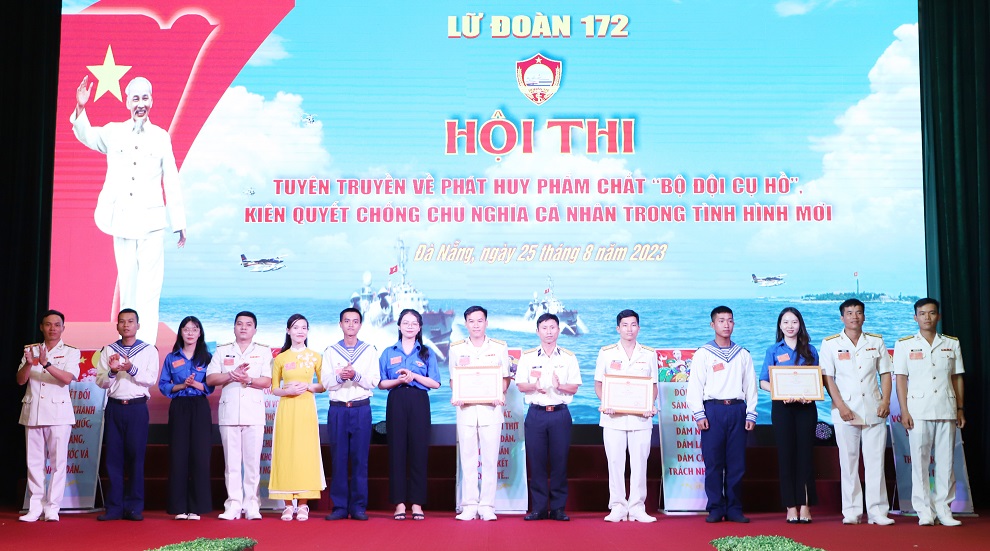Chiều 25/8, tại Đà Nẵng, Lữ đoàn 172, Vùng 3 Hải quân tổ chức Hội thi tuyên truyền về phát huy phẩm chất “Bộ đội Cụ Hồ”, kiên quyết chống chủ nghĩa cá nhân trong tình hình mới. Đại tá Lưu Thanh Chương, Phó Chủ nhiệm Chính trị Vùng dự, chỉ đạo. Cùng dự có đại biểu các cơ quan, đơn vị trực thuộc Vùng; các đơn vị kết nghĩa và hơn 300 cán bộ, chiến sĩ.