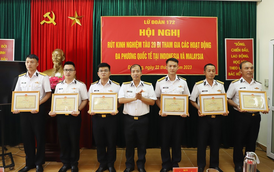 Dịp này, thủ trưởng Bộ Tư lệnh Vùng 3 và chỉ huy Lữ đoàn 172 đã tặng Giấy khen 3 tập thể và 13 cá nhân có thành tích tốt trong thực hiện nhiệm vụ đối ngoại quốc phòng.