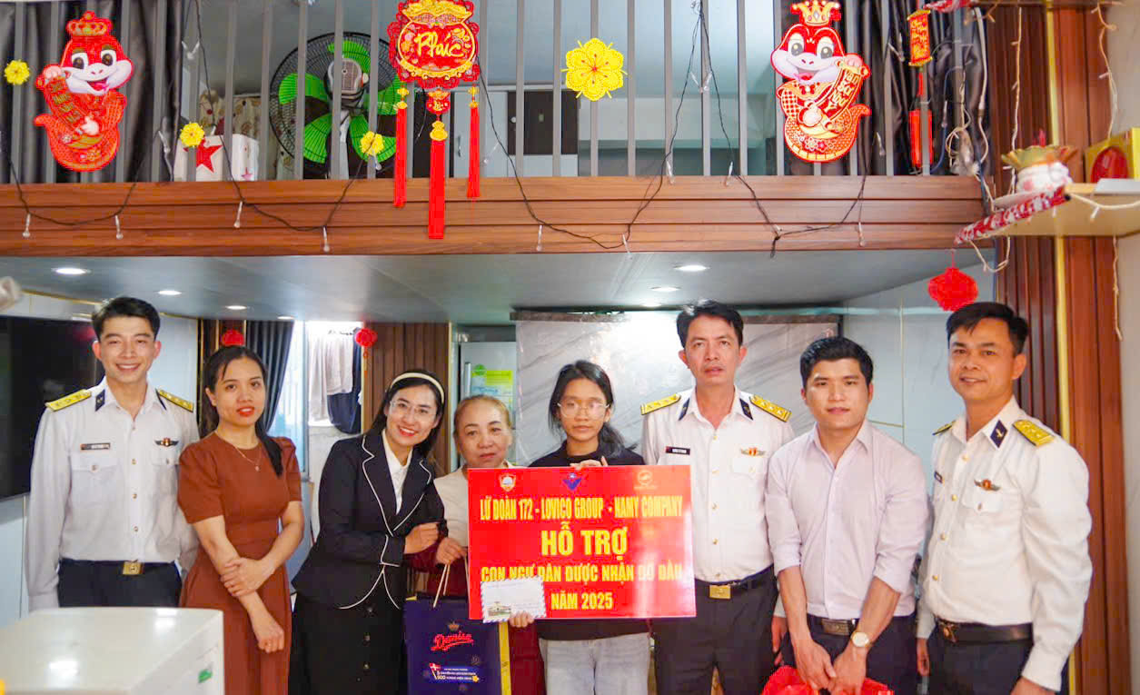 Ngày 23/1, tại TP. Đà Nẵng, Lữ đoàn 172, Vùng 3 Hải quân phối hợp với Công ty cổ phần Long Việt (LOVICO) và Công ty TNHH NAMY Đà Nẵng tổ chức thăm hỏi, động viên, tặng quà và trao tiền hỗ trợ cho 2 cháu là con ngư dân có hoàn cảnh khó khăn được đơn vị nhận đỡ đầu.