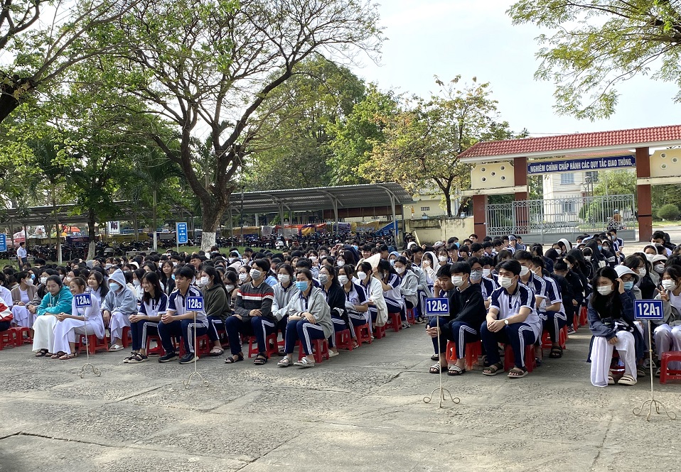 Đông đảo học sinh Trường THPT Trưng Vương nghe thông tin về biển, đảo