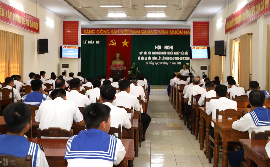 Sáng 8/7, tại Đà Nẵng, Lữ đoàn 172, Vùng 3 Hải quân tổ chức Hội nghị gặp mặt, tuyên dương Quân nhân chuyên nghiệp (QNCN) tiêu biểu nhân dịp kỷ niệm 56 năm Ngày thành lập đơn vị. Đại tá Đỗ Ngọc Hiểu, Lữ đoàn trưởng Lữ đoàn 172 dự và chủ trì.
