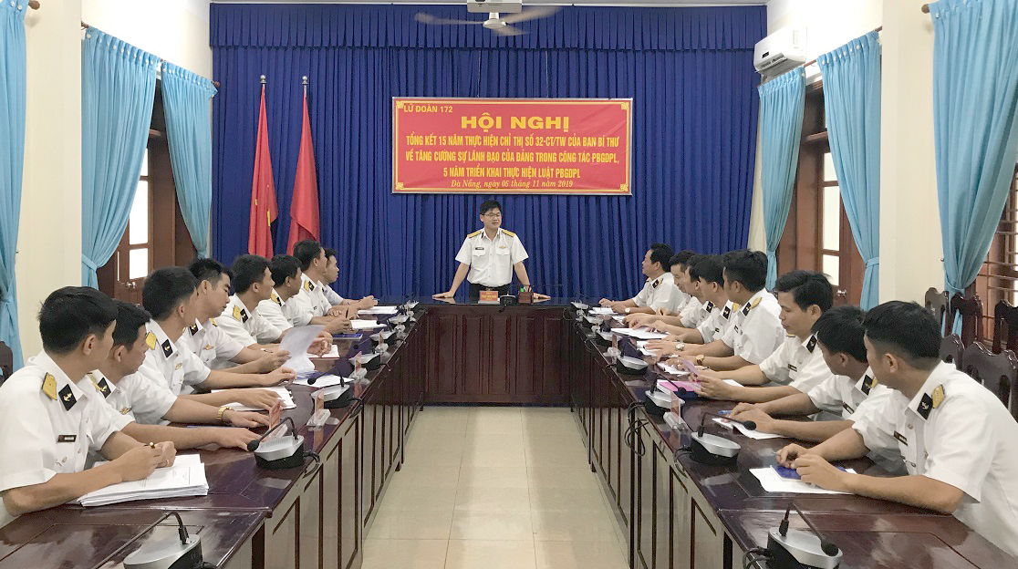 Sáng 5-11, tại TP. Đà Nẵng, Lữ đoàn 172, Vùng 3 Hải quân tổ chức Hội nghị tổng kết 15 năm thực hiện Chỉ thị số 32-CT/TW ngày 9-12-2013 của Ban Bí thư về tăng cường sự lãnh đạo của Đảng trong công tác phổ biến giáo dục pháp luật (PBGDPL) và 5 năm triển khai thực hiện Luật PBGDPL.