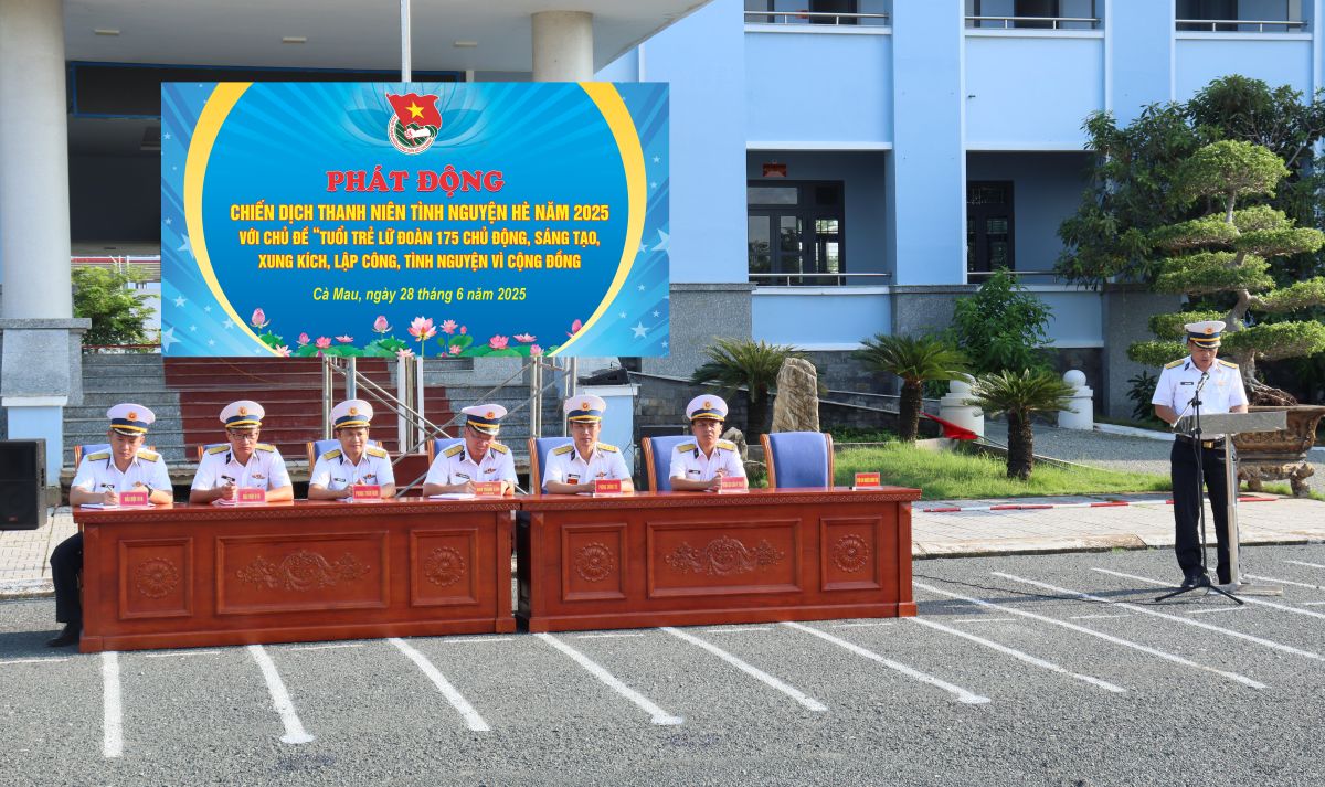 Sáng 28/6, tại huyện Năm Căn, tỉnh Cà Mau, Lữ đoàn 175, Vùng 5 Hải quân tổ chức Lễ phát động phát động chiến dịch “Thanh niên tình nguyện hè năm 2025” với chủ đề “Tuổi trẻ Lữ đoàn 175 chủ động, sáng tạo, xung kích, lập công, tình nguyện vì cộng đồng”. Thượng tá Ngô Thanh Lâm, Phó Lữ đoàn trưởng chủ trì.