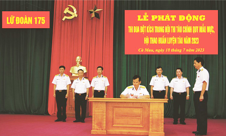 Sáng 18/7, tại huyện Năm Căn, tỉnh Cà Mau, Lữ đoàn 175, Vùng 5 Hải quân tổ chức Lễ phát động thi đua đột kích trong Hội thi Tàu chính quy mẫu mực, Hội thao huấn luyện tàu năm 2023. Thượng tá Bùi Quang Phẩm, Bí thư Đảng uỷ, Chính ủy Lữ đoàn dự và chỉ đạo.