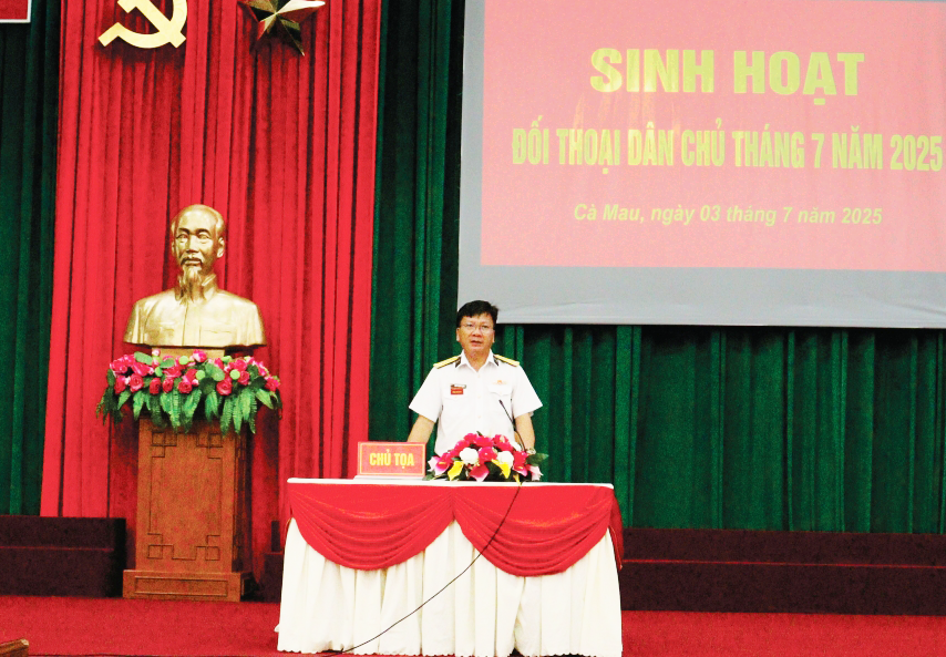 Sáng 3/7, tại Cà Mau, Lữ đoàn 175, Vùng 5 Hải quân tổ chức sinh hoạt đối thoại dân chủ tháng 7 với cán bộ, chiến sĩ. Thượng tá Ngô Thanh Lâm, Phó Lữ đoàn trưởng chủ trì.