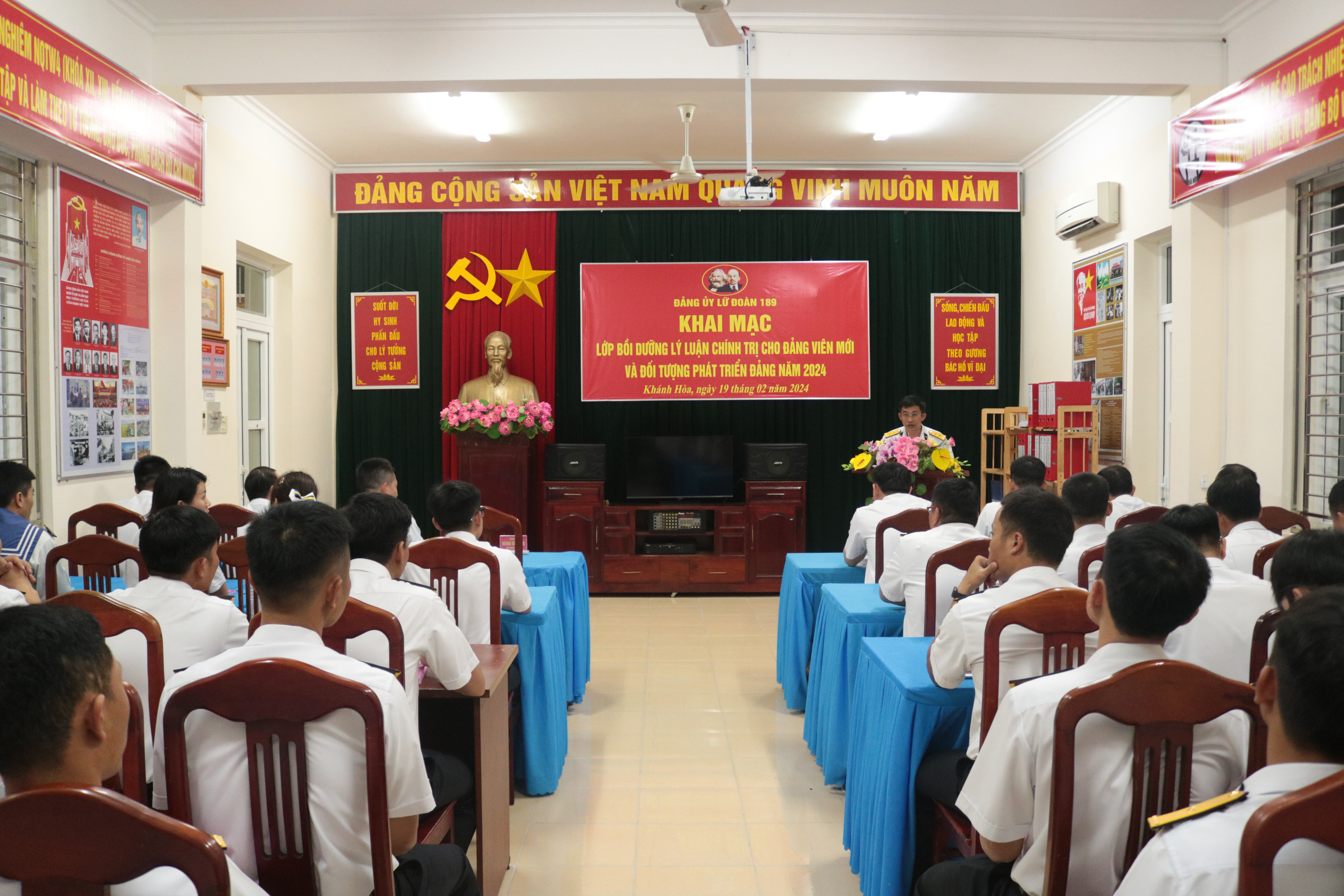 Từ 19 đến 23/2, tại TP. Cam Ranh, tỉnh Khánh Hòa, Đảng ủy Lữ đoàn 189 tổ chức Lớp bồi dưỡng lý luận chính trị cho đảng viên mới và đối tượng kết nạp Đảng năm 2024.