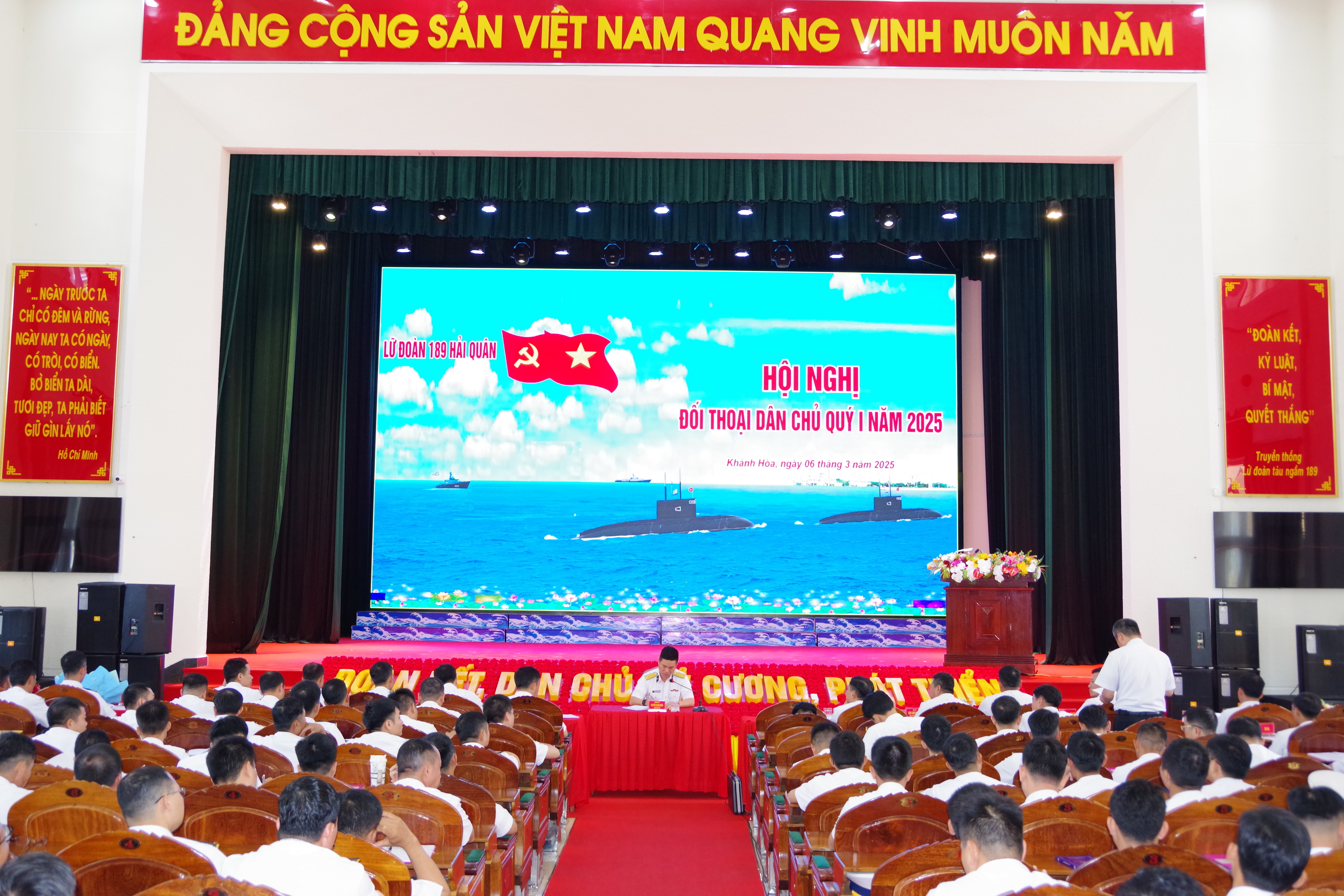 Ngày 6/3, tại TP. Cam Ranh, tỉnh Khánh Hoà, Lữ đoàn Tàu ngầm 189 Hải quân tổ chức Hội nghị đối thoại dân chủ quý I năm 2025. Thượng tá Nguyễn Xuân Quân, Lữ đoàn trưởng chủ trì hội nghị.