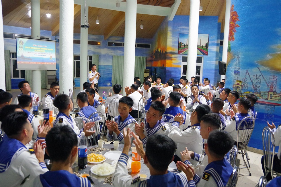 Thay mặt các chiến sĩ, Trung sĩ Lê Tuấn Kiệt đã phát biểu cảm tưởng và xin hứa với Đảng uỷ, chỉ huy Lữ đoàn sau khi trở về địa phương sẽ tiếp tục phát huy phẩm chất "Bộ đội Cụ Hồ - Người chiến sĩ Hải quân" thời kỳ mới, trở thành những công dân tốt của xã hội, góp phần xây dựng quê hương, đất nước giàu mạnh.