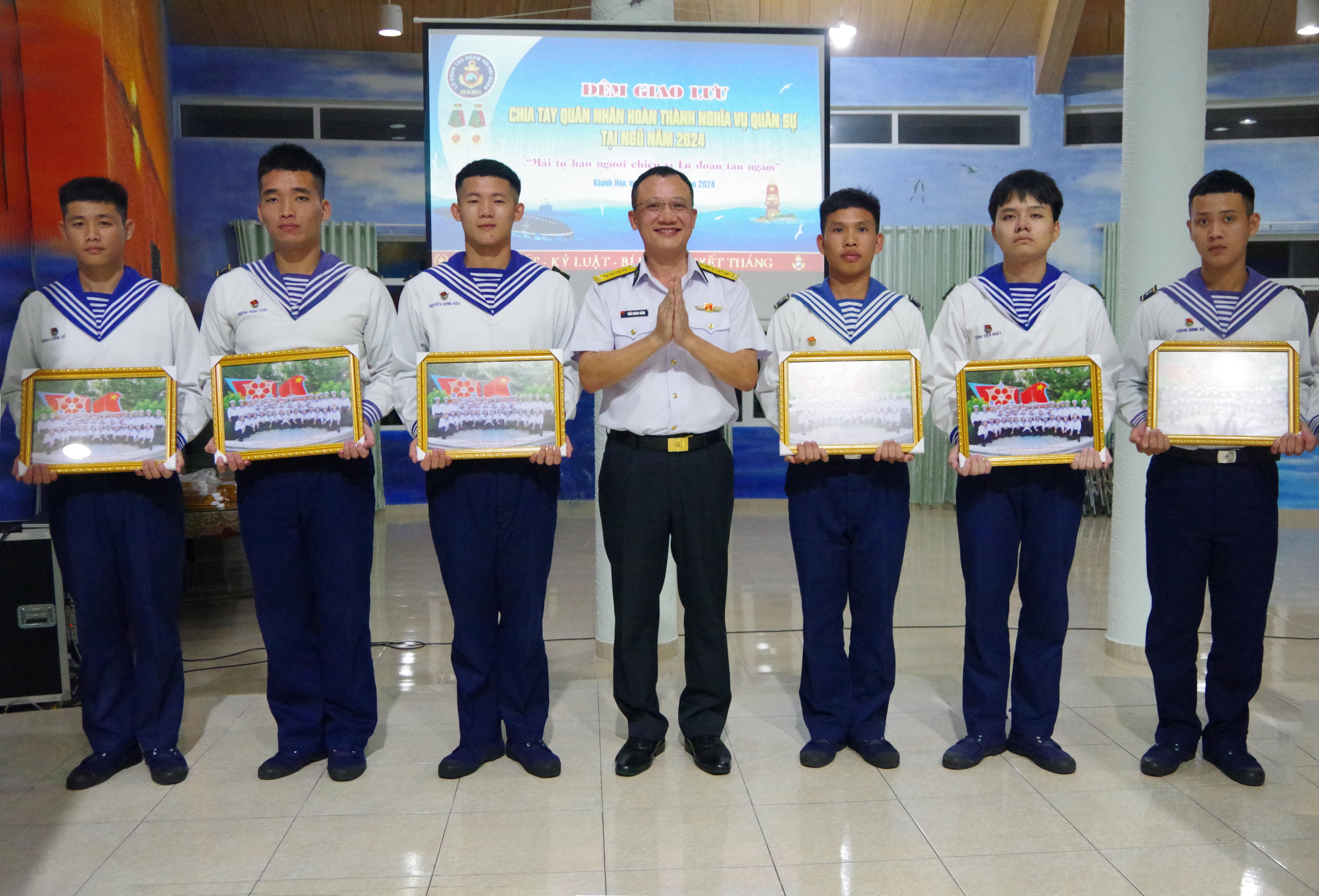 Tối 27/1, tại TP. Cam Ranh, tỉnh Khánh Hoà, Lữ đoàn 189 Hải quân tổ chức buổi gặp mặt chia tay HSQ-BS xuất ngũ năm 2024 với chủ đề “Mãi tự hào người chiến sĩ Lữ đoàn tàu ngầm”. Đại tá Trần Hoàng Thắng, Phó Chính uỷ Lữ đoàn dự.