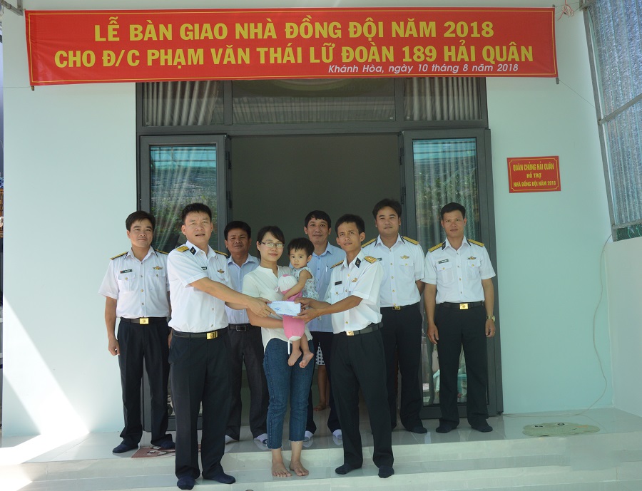 Ngày 10-8, tại thị trấn Cam Đức, huyện Cam Lâm, tỉnh Khánh Hòa, Lữ đoàn 189 Hải quân phối hợp với chính quyền địa phương tổ chức Lễ bàn giao nhà đồng đội cho Trung úy QNCN Phạm Văn Thái, Nhân viên vật tư, Phòng Kỹ thuật, Lữ đoàn 189.