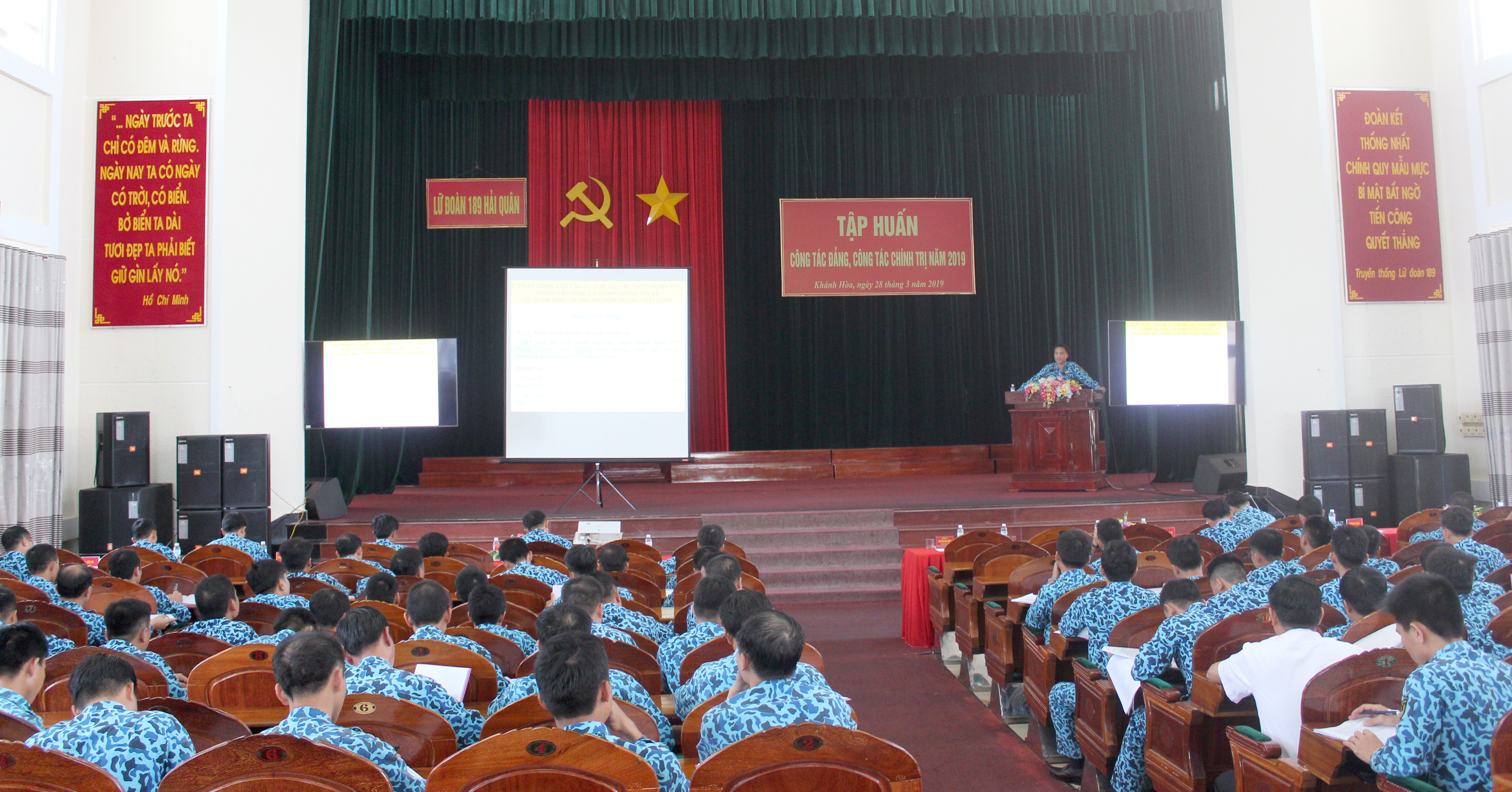 Ngày 28-3, tại TP. Cam Ranh, tỉnh Khánh Hòa, Lữ đoàn 189 Hải quân tổ chức Hội nghị tập huấn công tác Đảng, công tác chính trị năm 2019 (CTĐ, CTCT) cho gần 200 đồng chí là cấp ủy viên, cán bộ chính trị của các cơ quan, đơn vị trong toàn Lữ đoàn. Thượng tá Nguyễn Văn Quán, Bí thư Đảng ủy, Chính ủy Lữ đoàn chủ trì hội nghị.